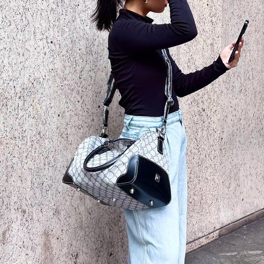 Sale price ₱12,000.00Vintage Signature Gray and Black Leather Trim Duffle Carry On Bag
