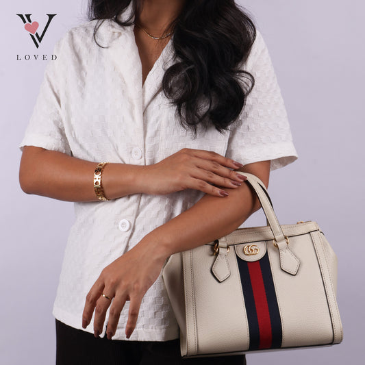 Sold outGucci | Very GoodRegular price ₱53,000.00Regular priceUnit price per₱55,000.00Sale price ₱53,000.00White Ophidia Leather Satchel Bag