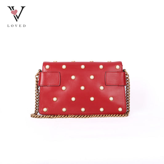 Sale price ₱39,000.00Nappa Pearl Studded Queen Margaret Broadway Shoulder In Hibiscus Red