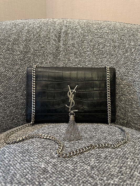 Sale price ₱74,000.00Yves Saint Laurent Kate Shoulder Bag in Crocodile-Embossed Black Leather