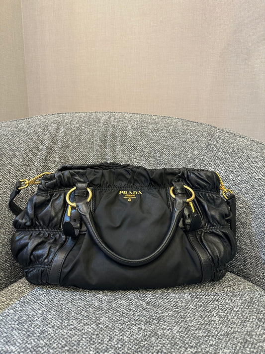 Sale price ₱36,000.00Prada Tessuto Gaufre Satchel Bag in Black Nylon and Leather