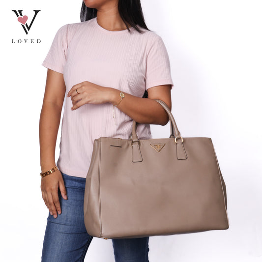 Sale price ₱25,000.00Beige Saffiano Lux Leather Double Zip Tote