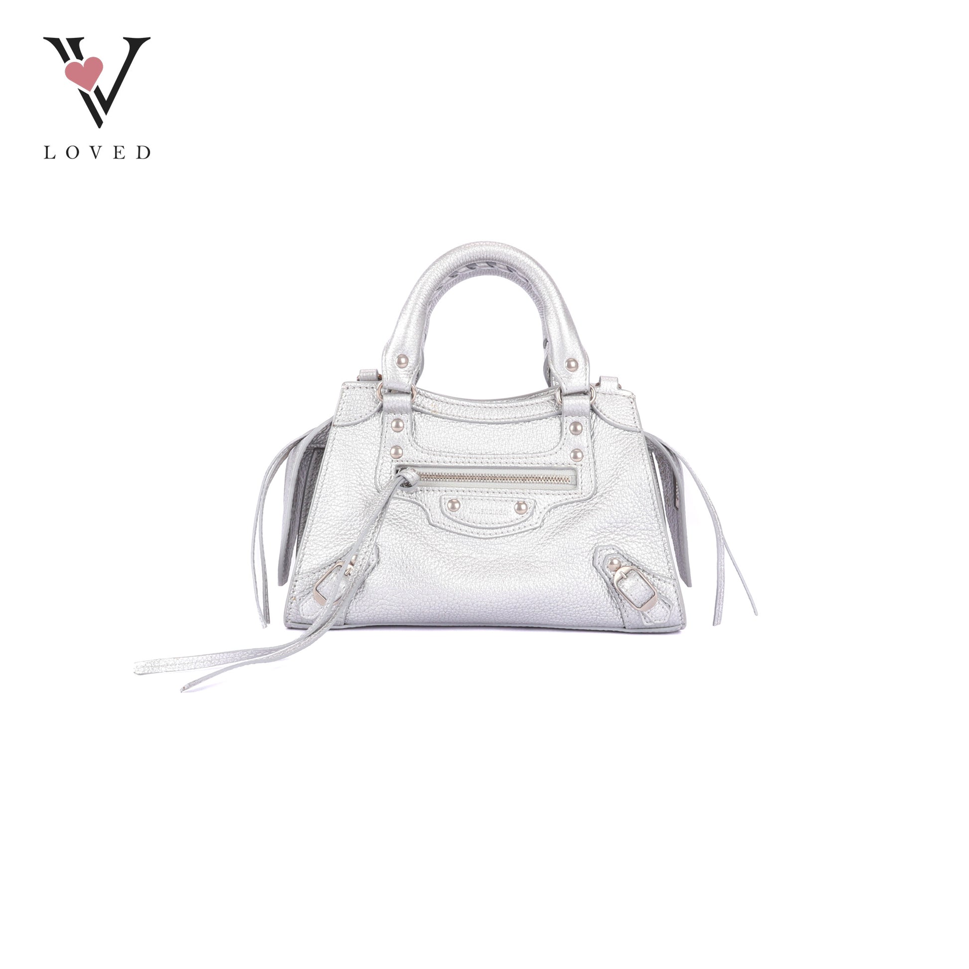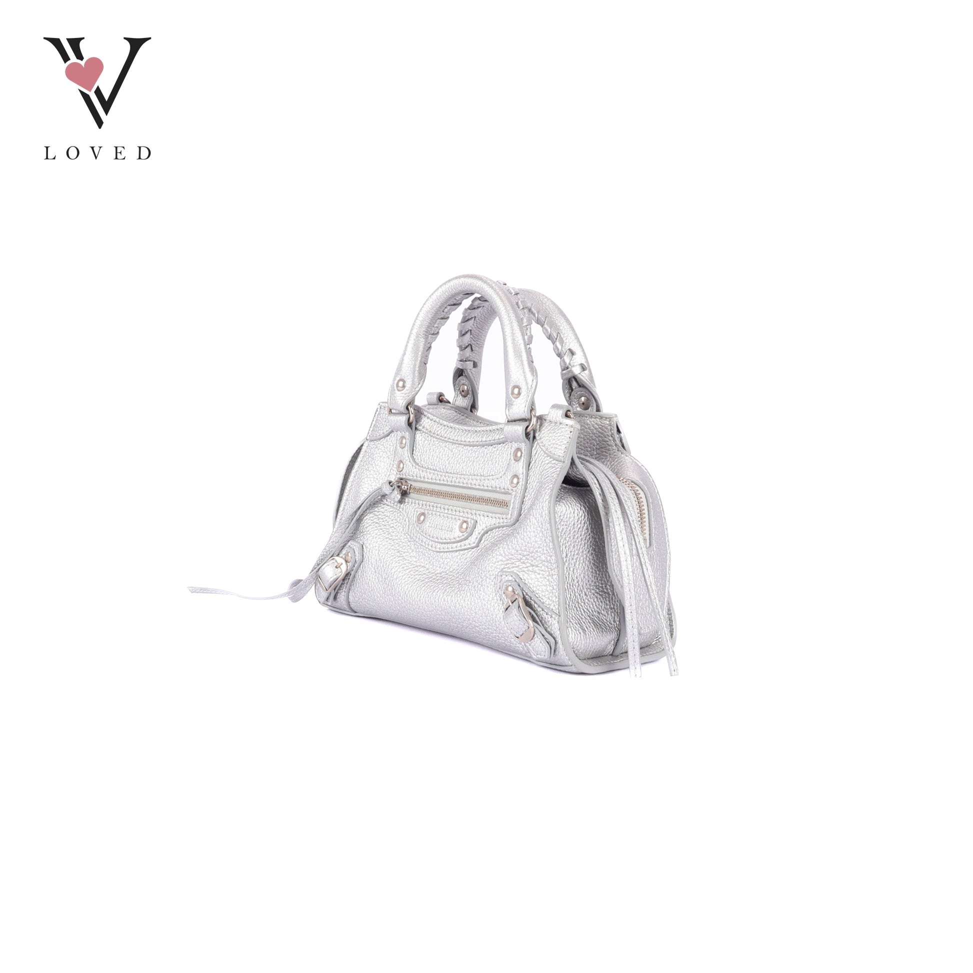 Balenciaga Neo Classic City Bag in Metallic Silver Grained Calfskin Leather
