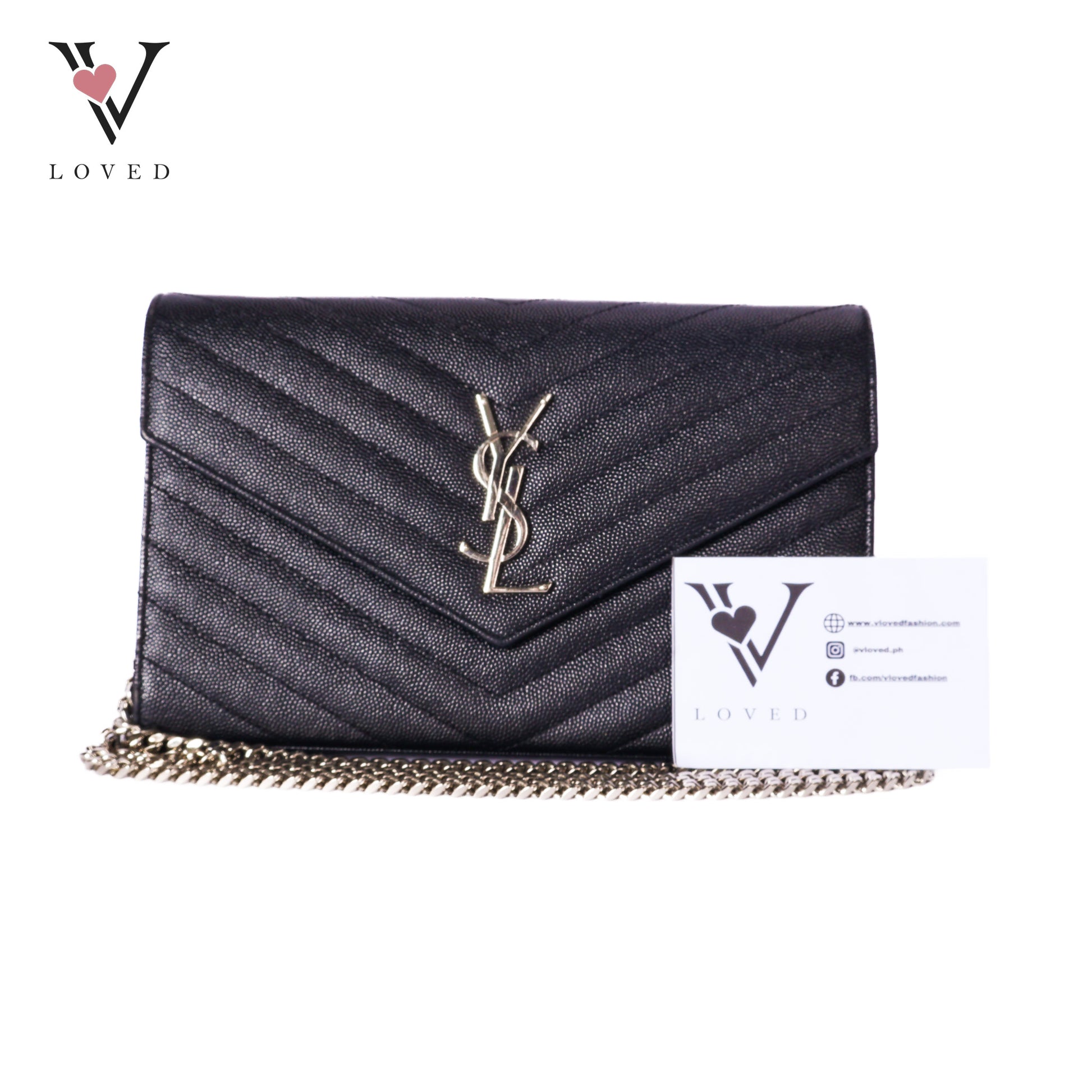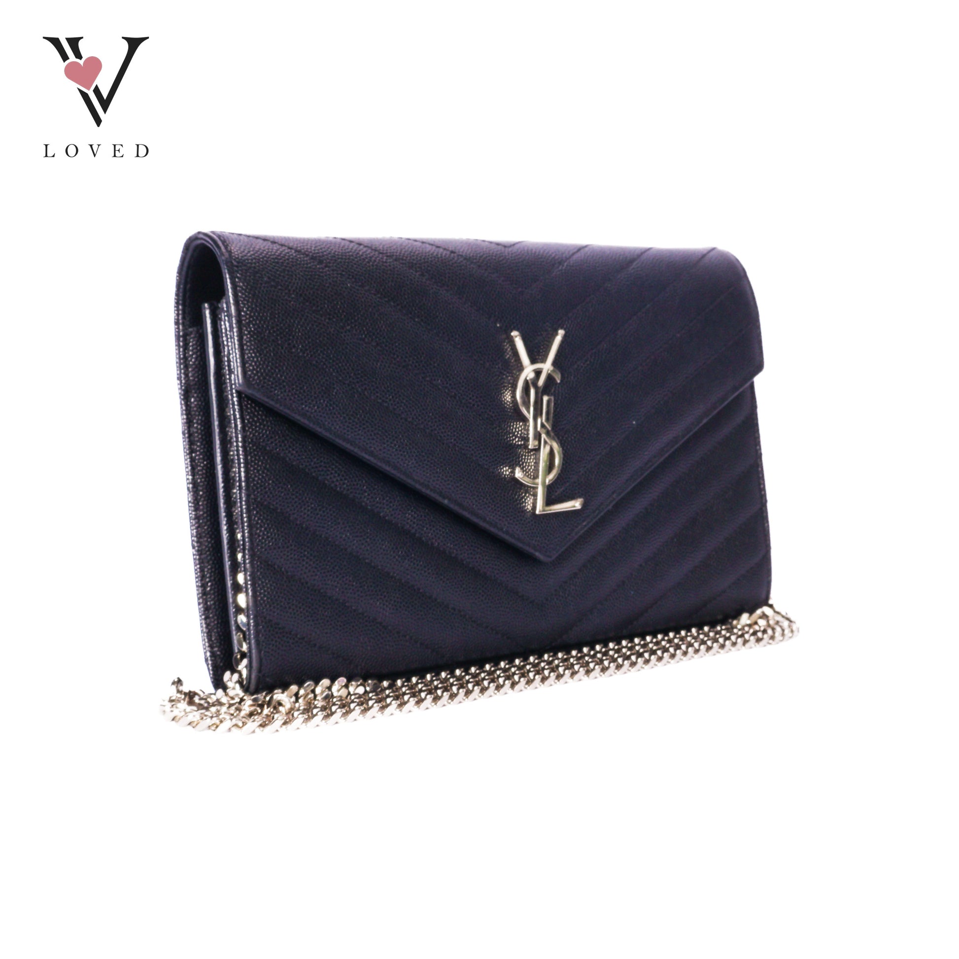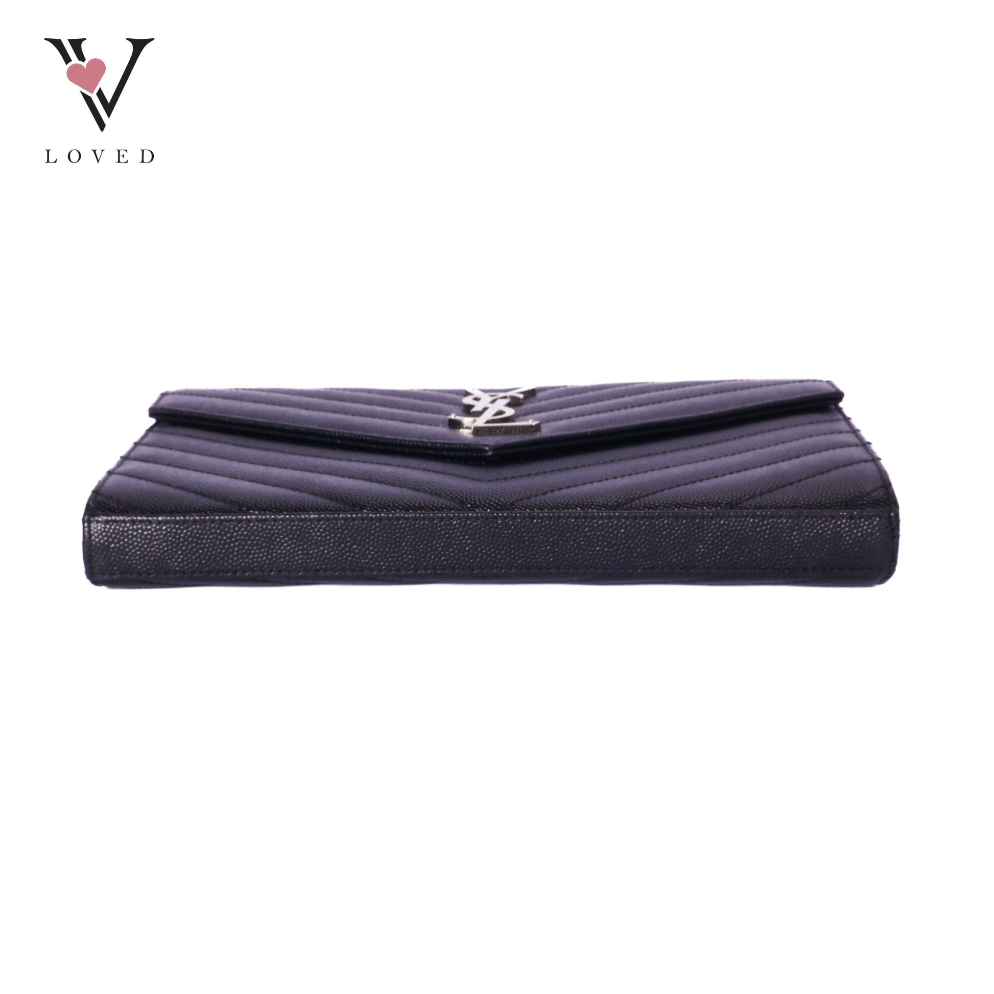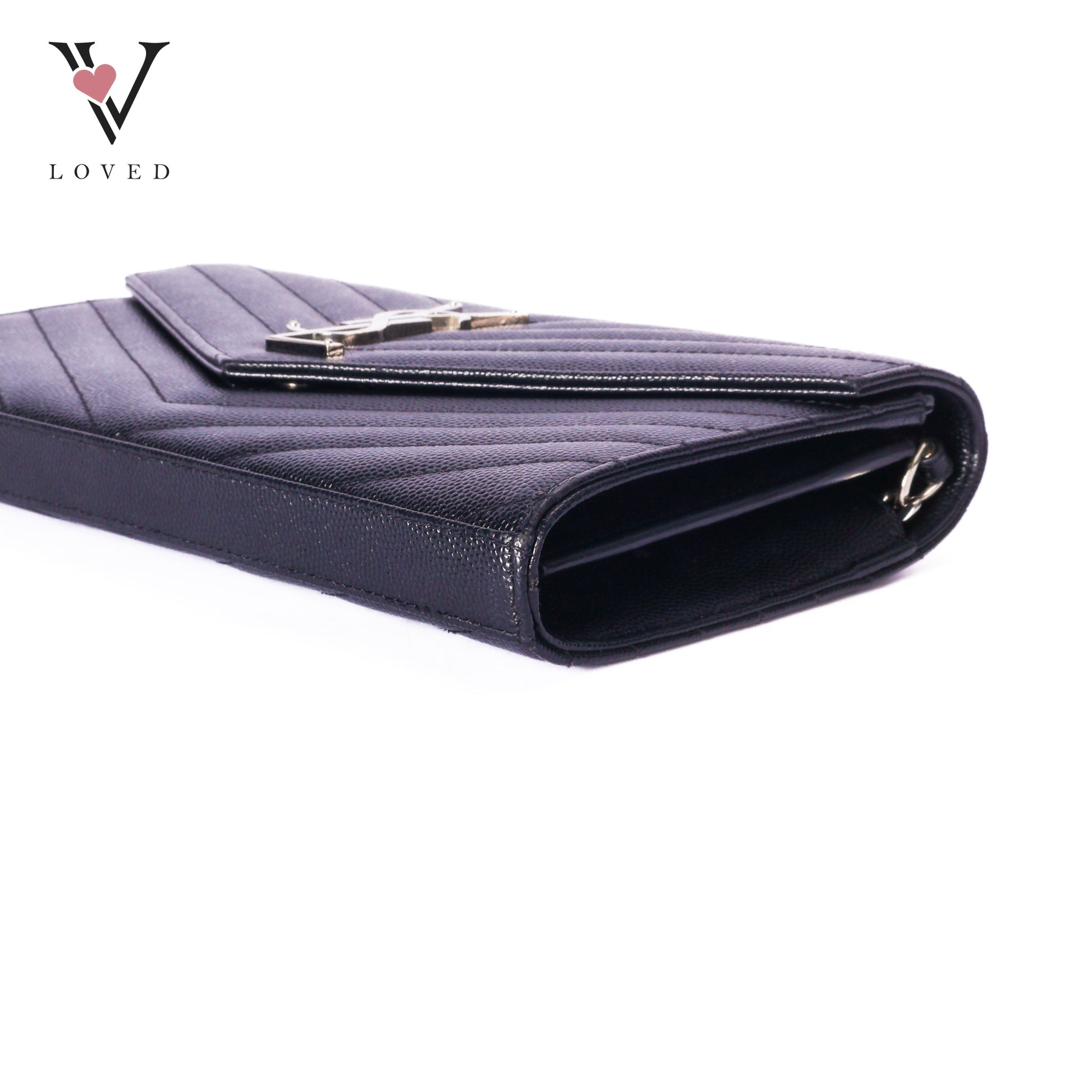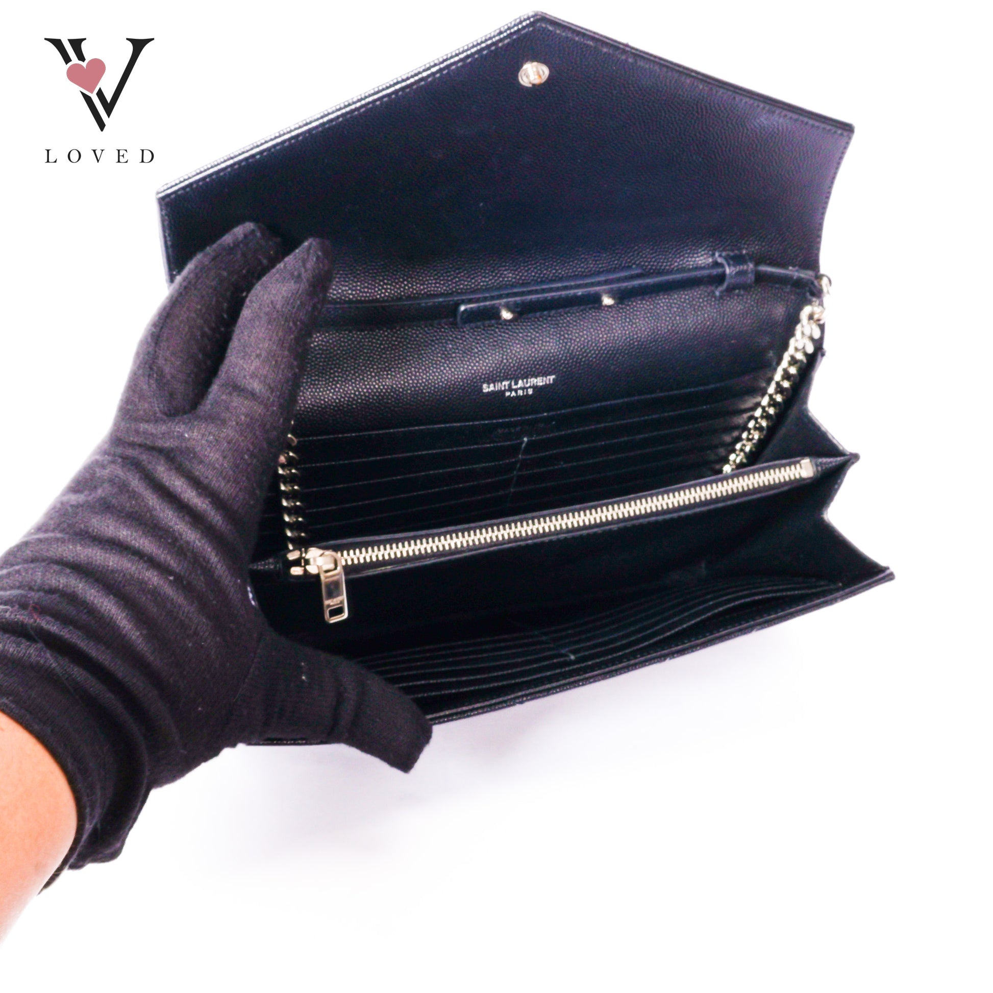 Black Cassandre Envelope Chain Wallet In Grain De Poudre Leather