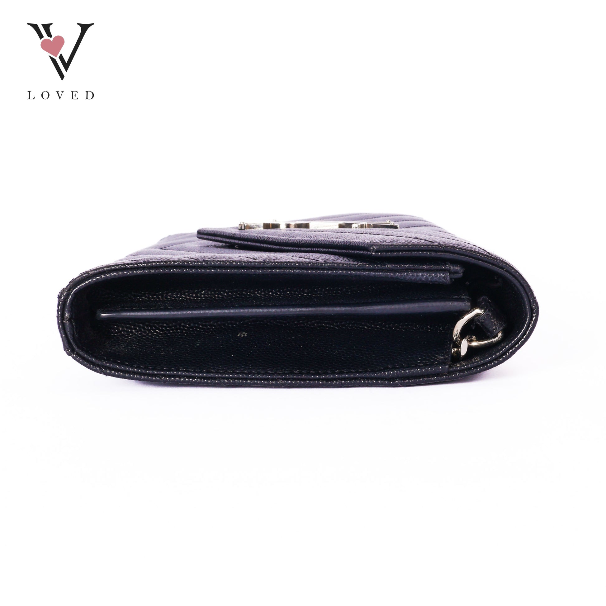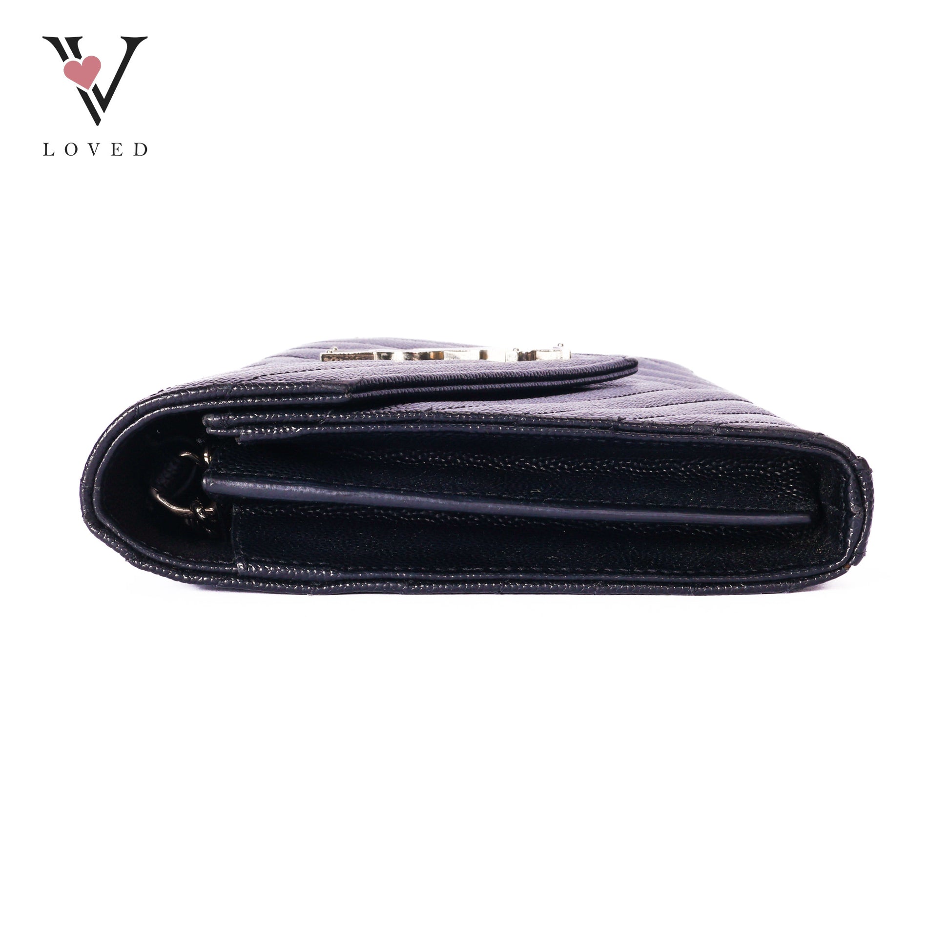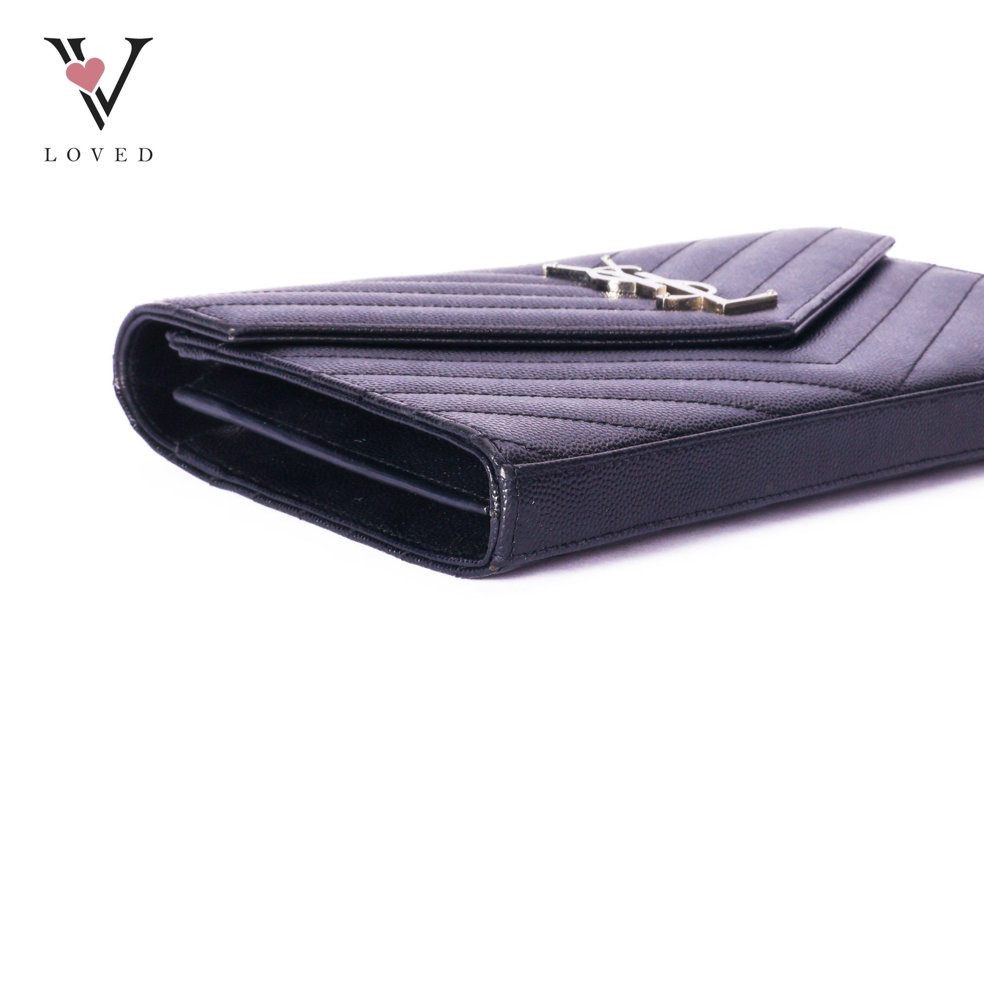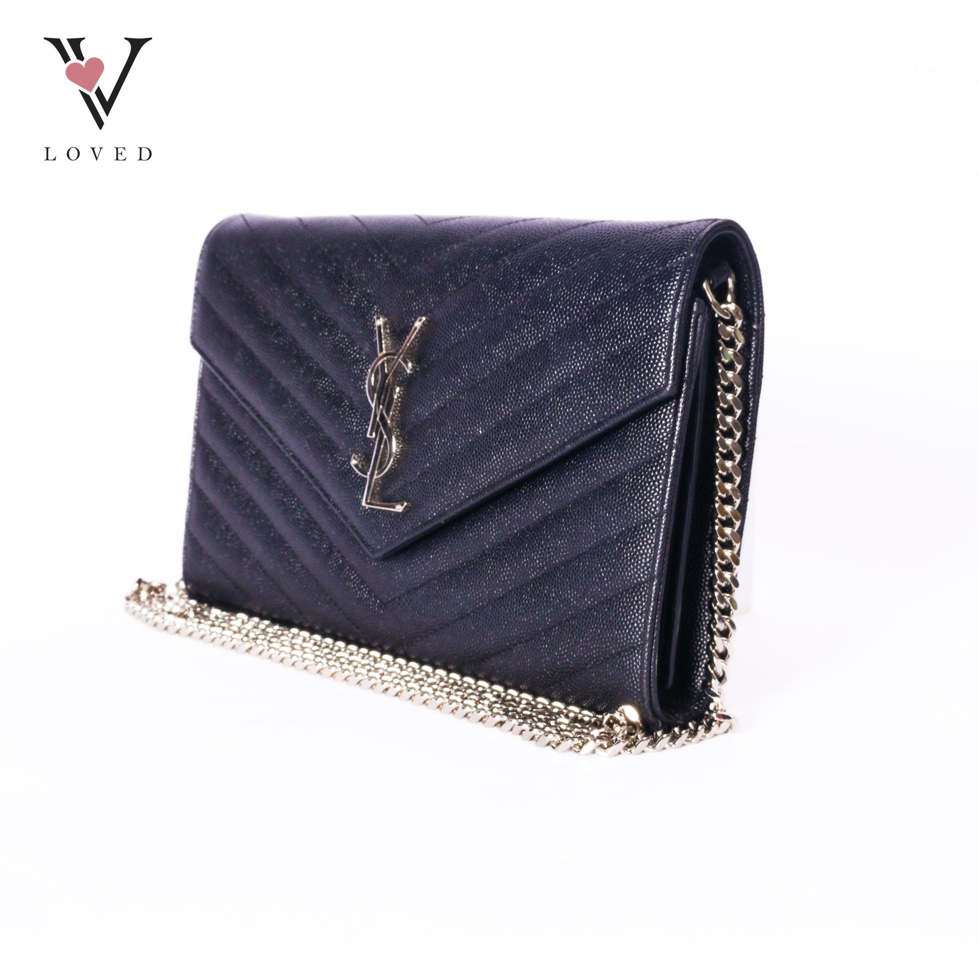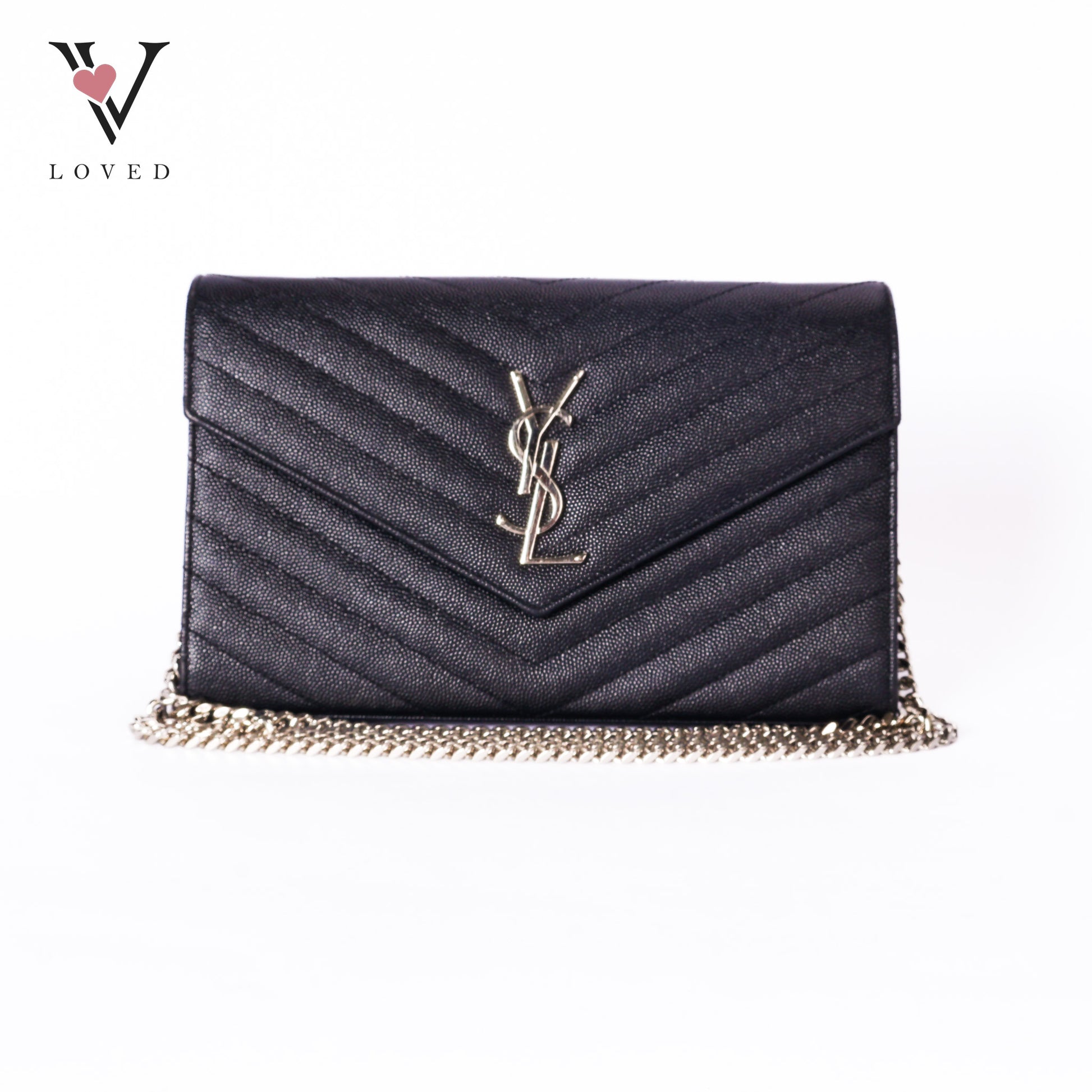 Black Cassandre Envelope Chain Wallet In Grain De Poudre Leather