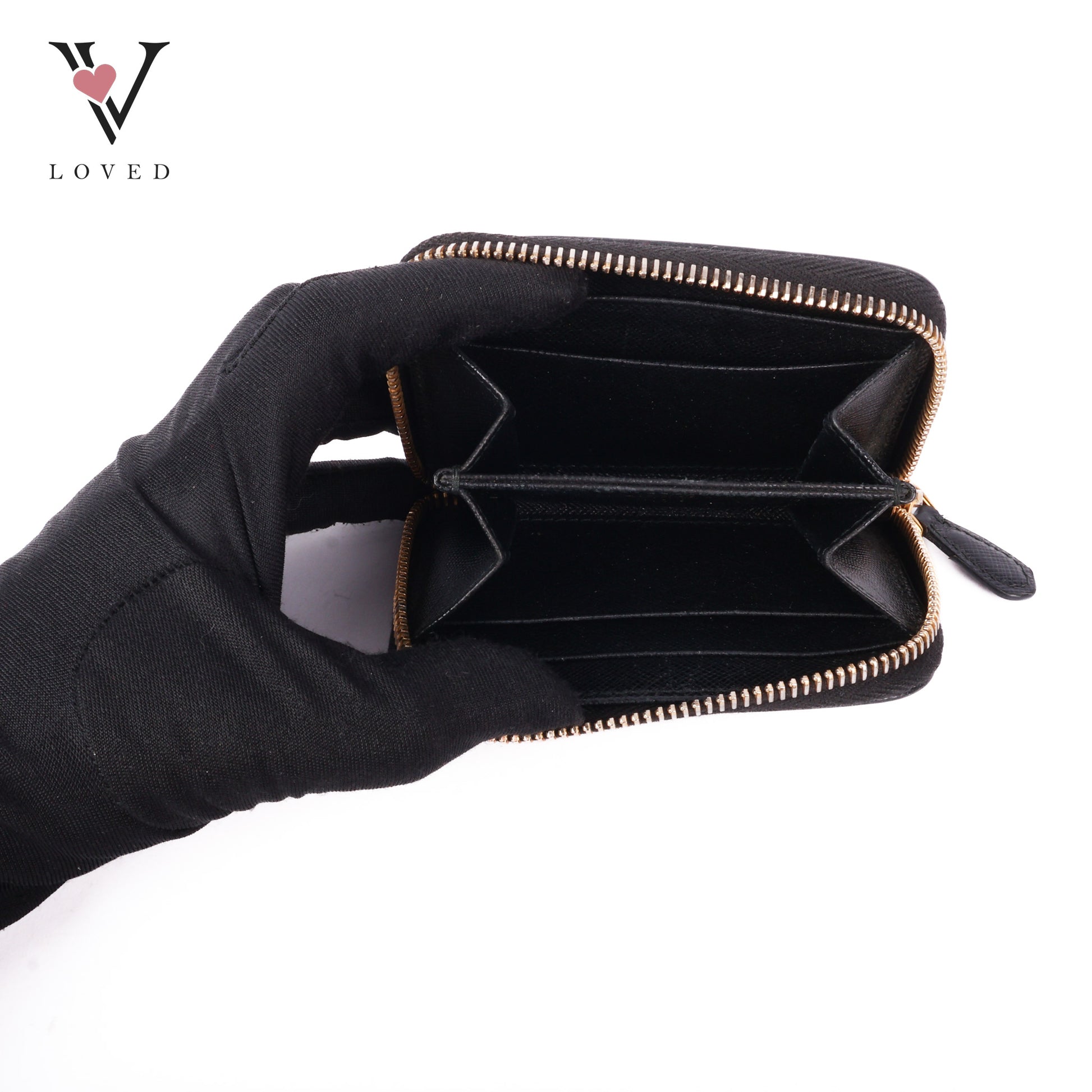 Black Saffiano Zip Around Compact Wallet