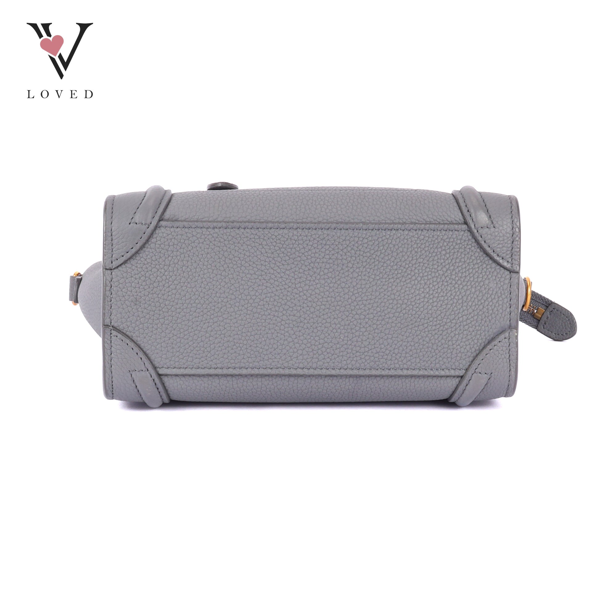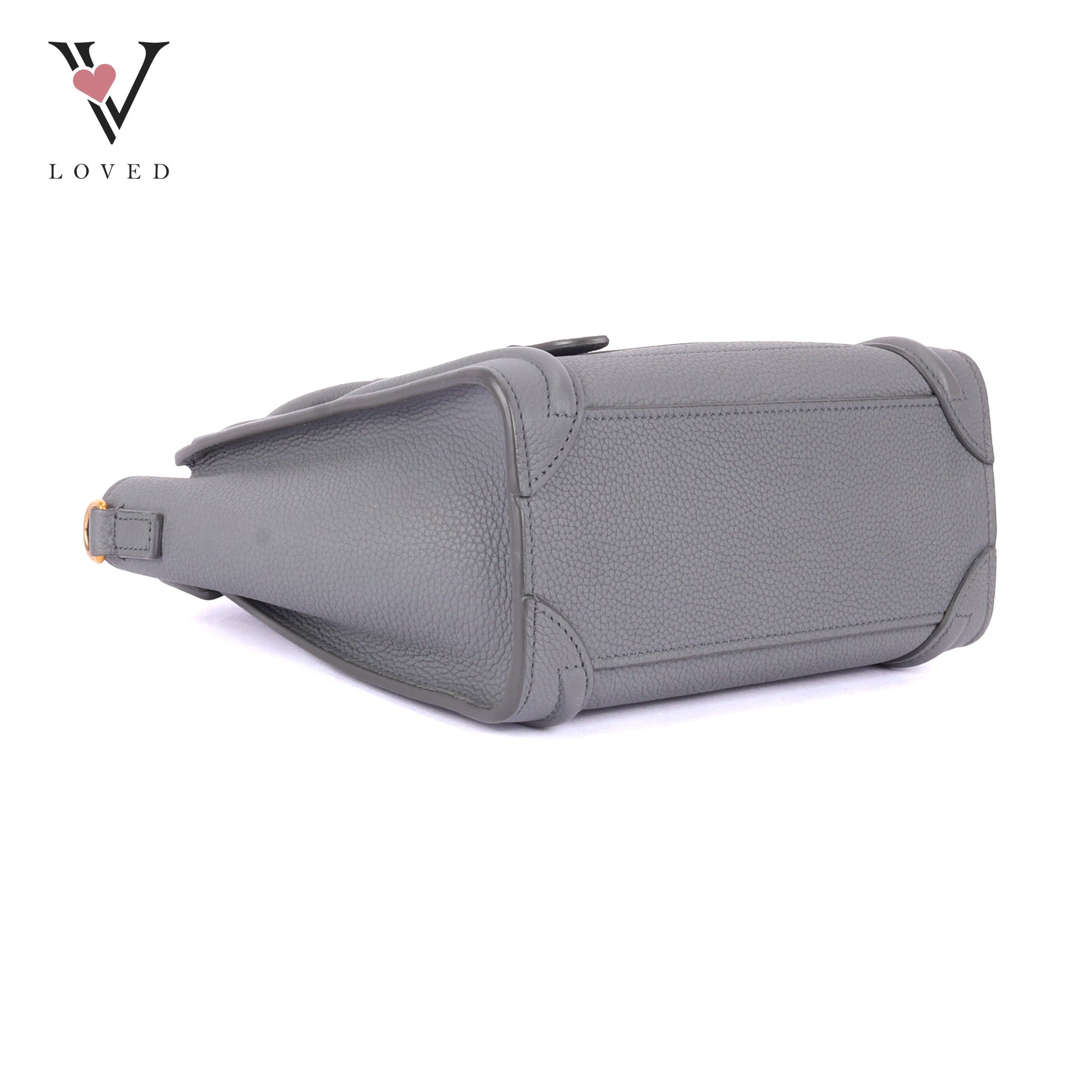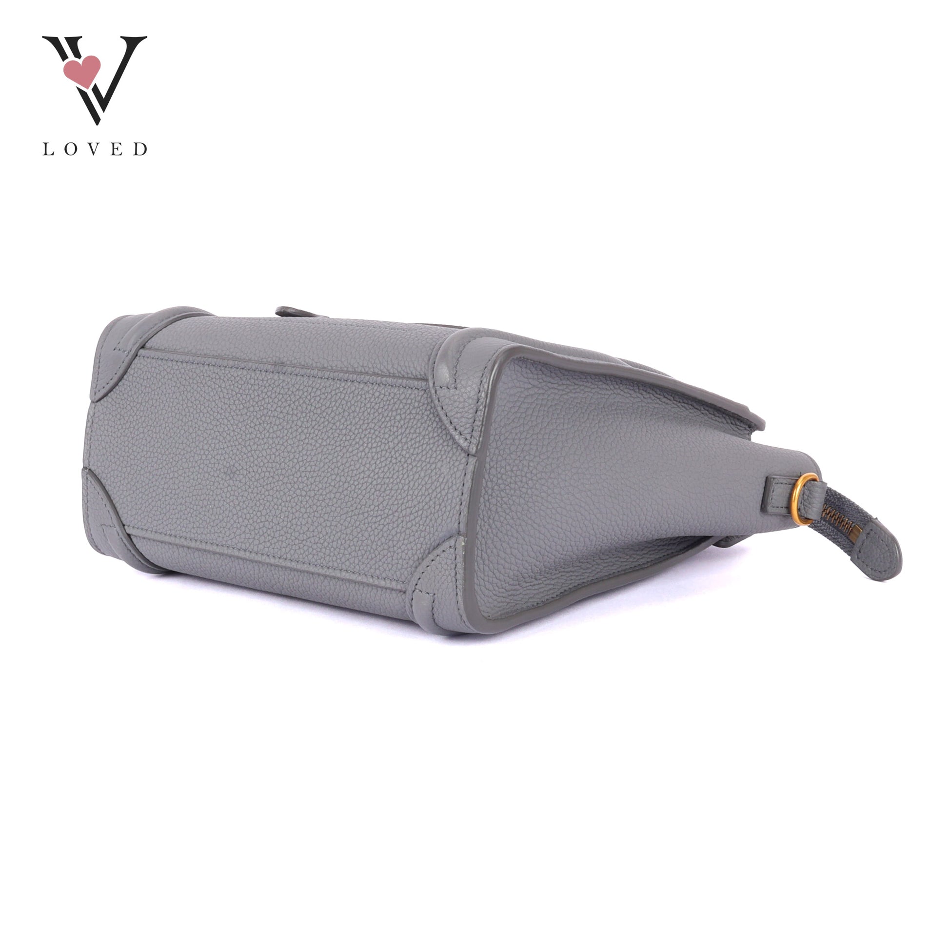 Celine Nano Luggage In Grey Drummed Calfskin Leather
