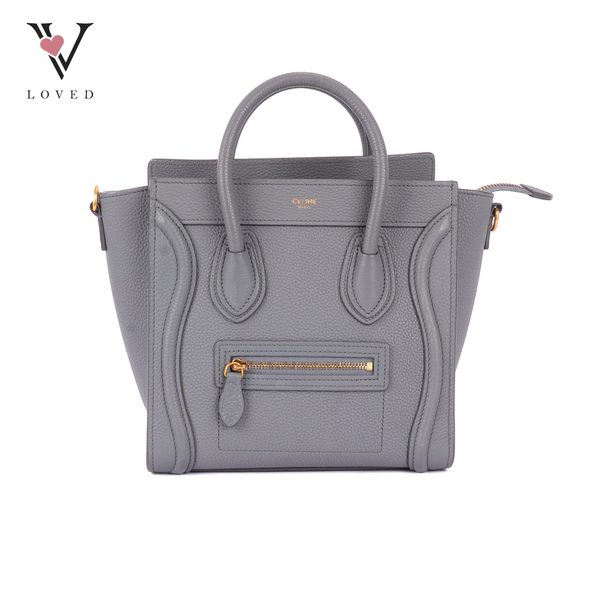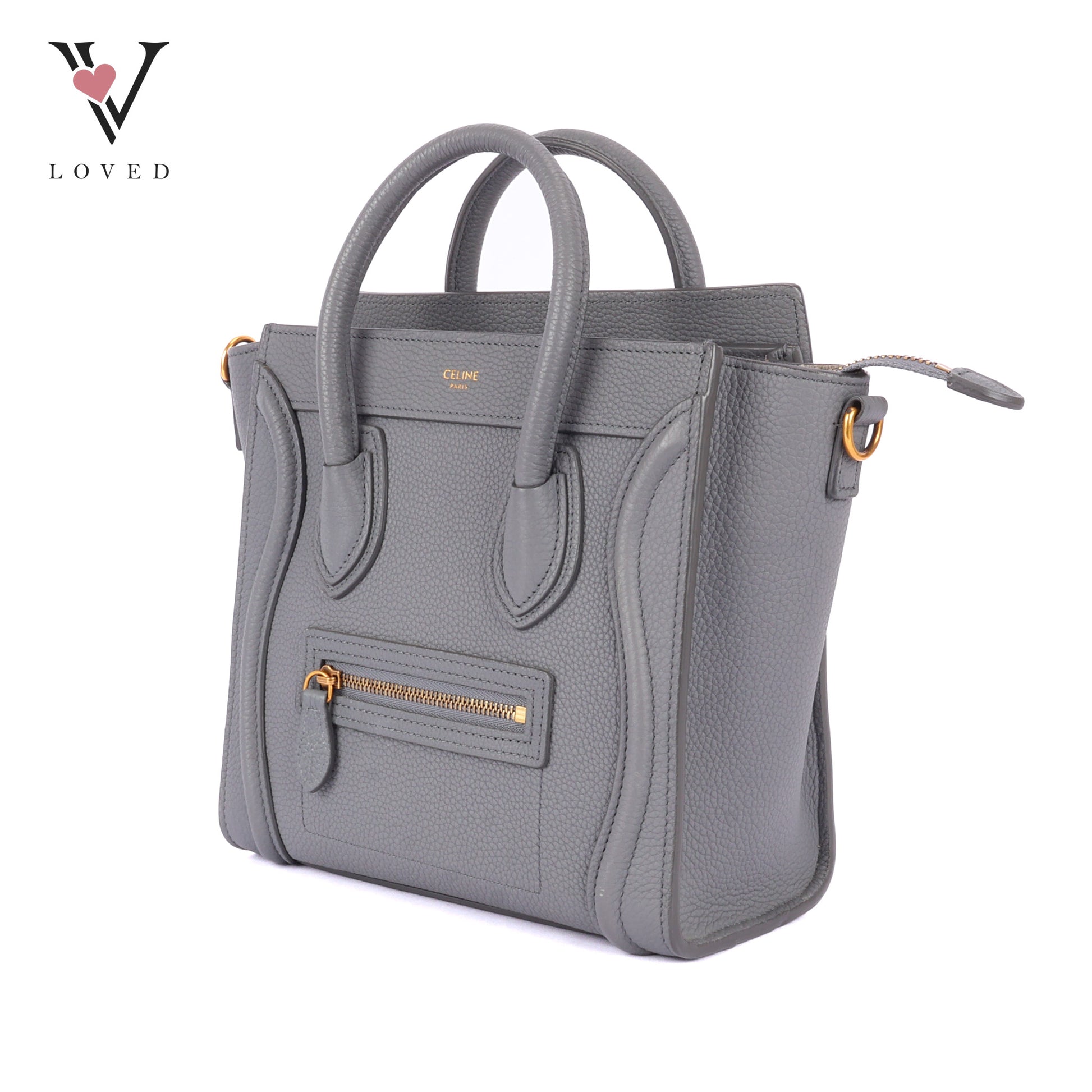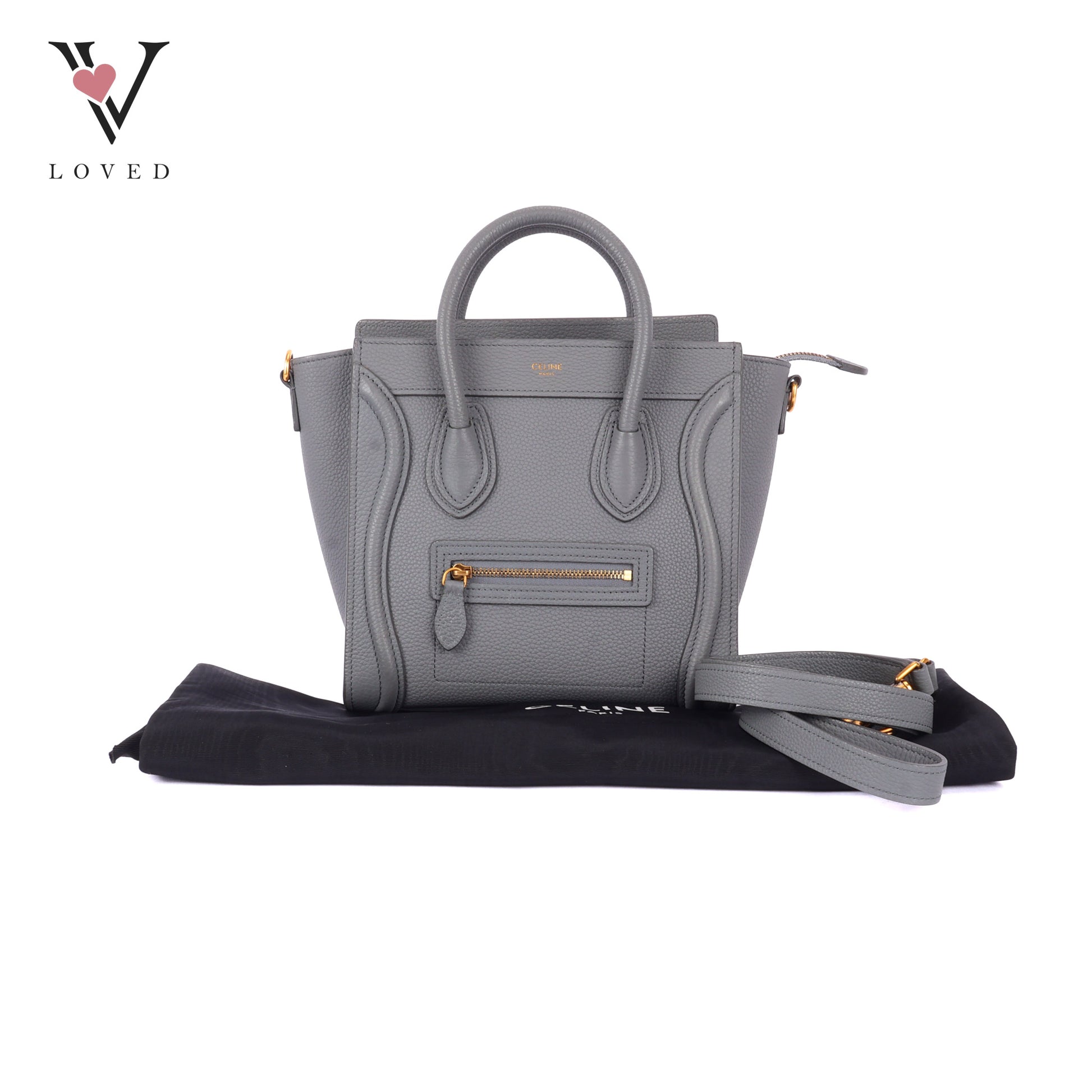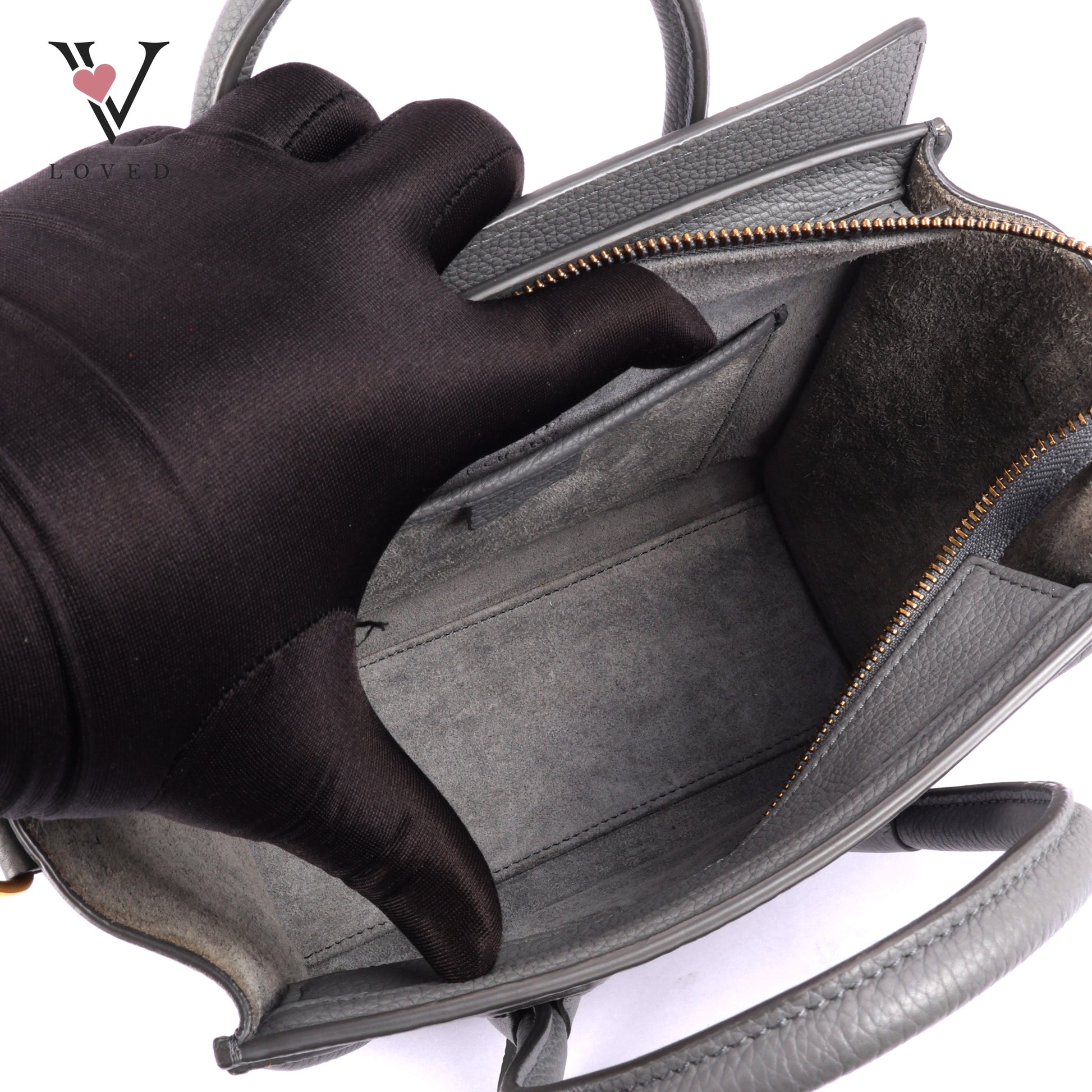 Celine Nano Luggage In Grey Drummed Calfskin Leather