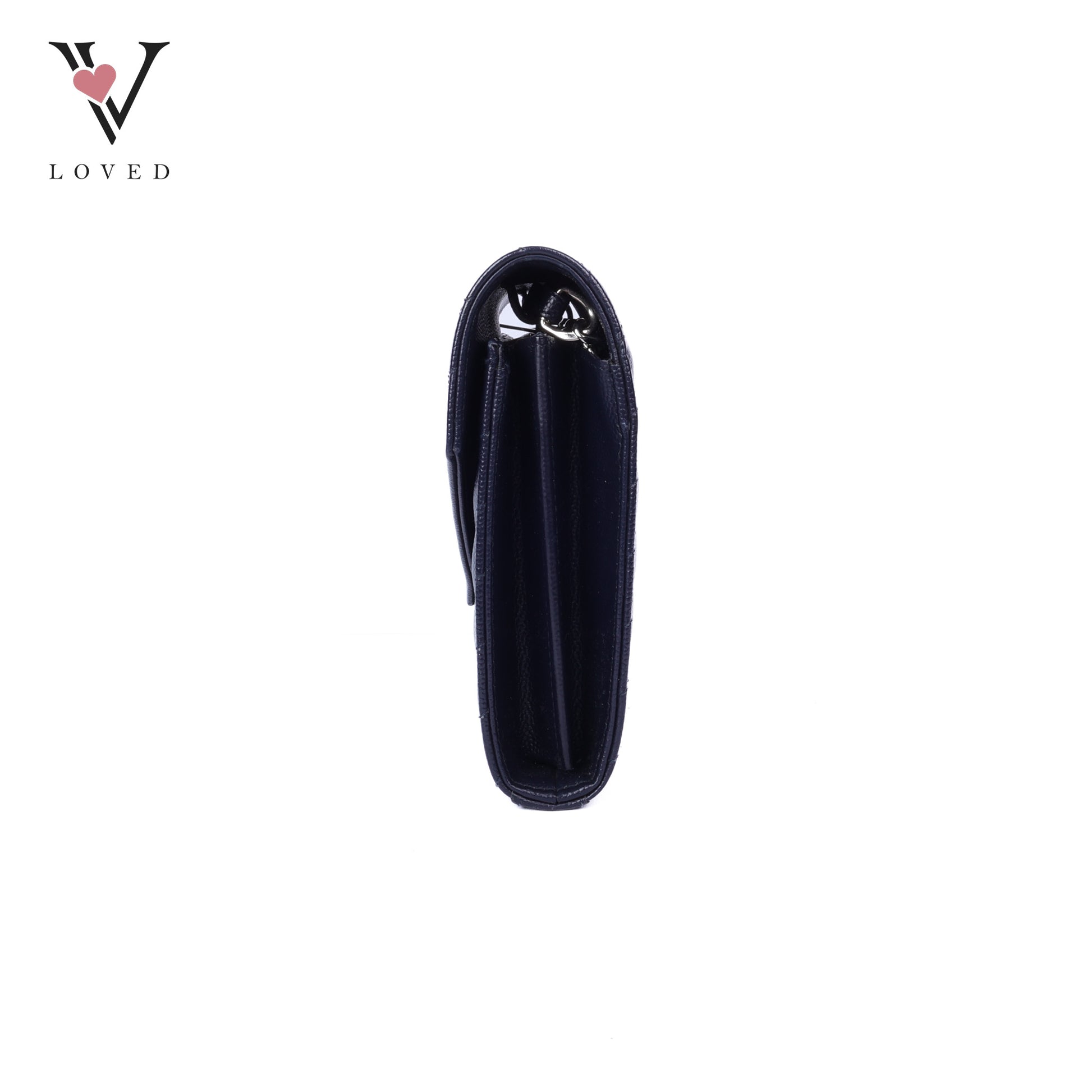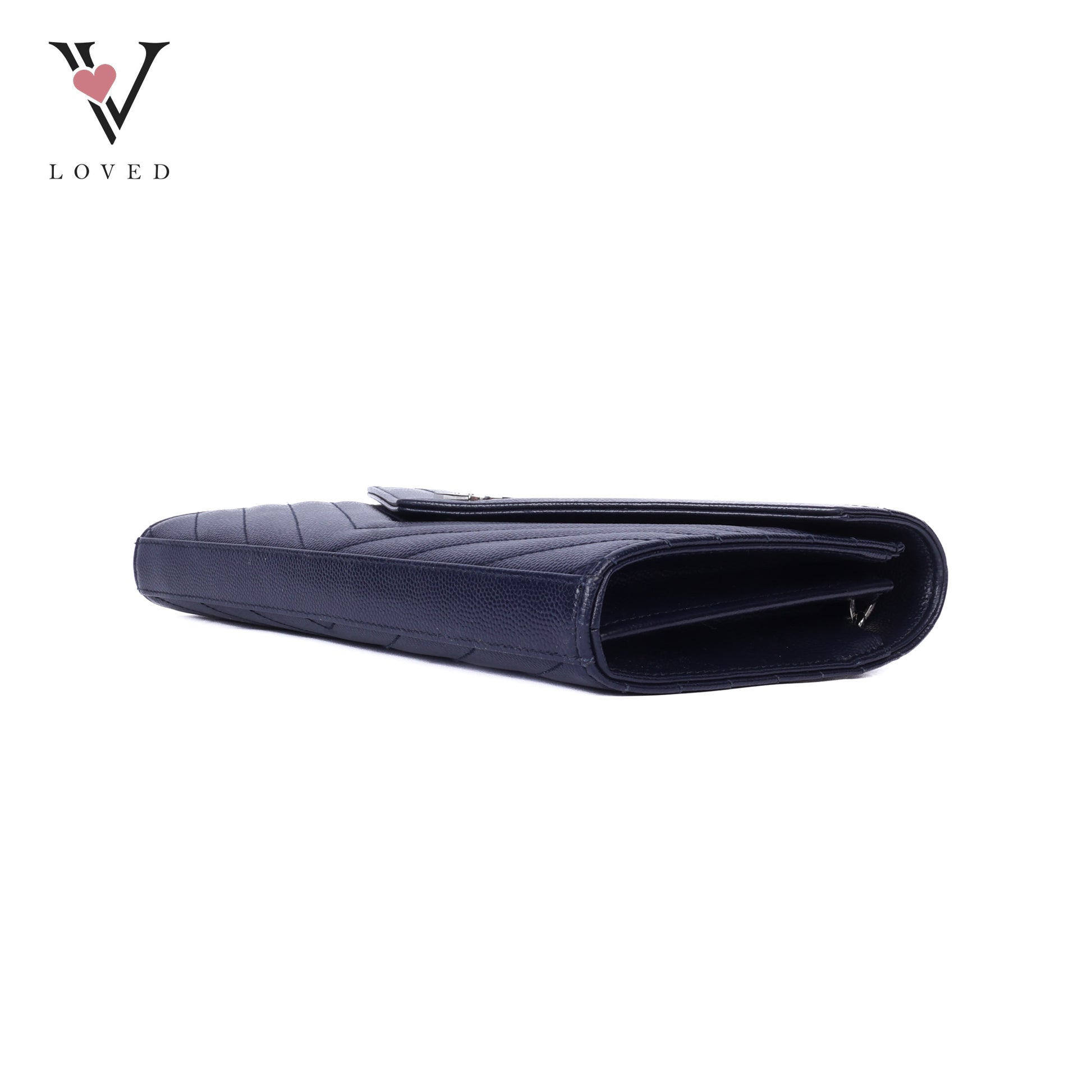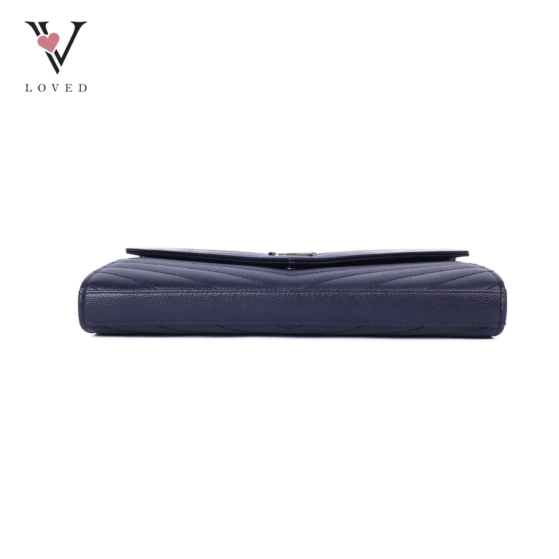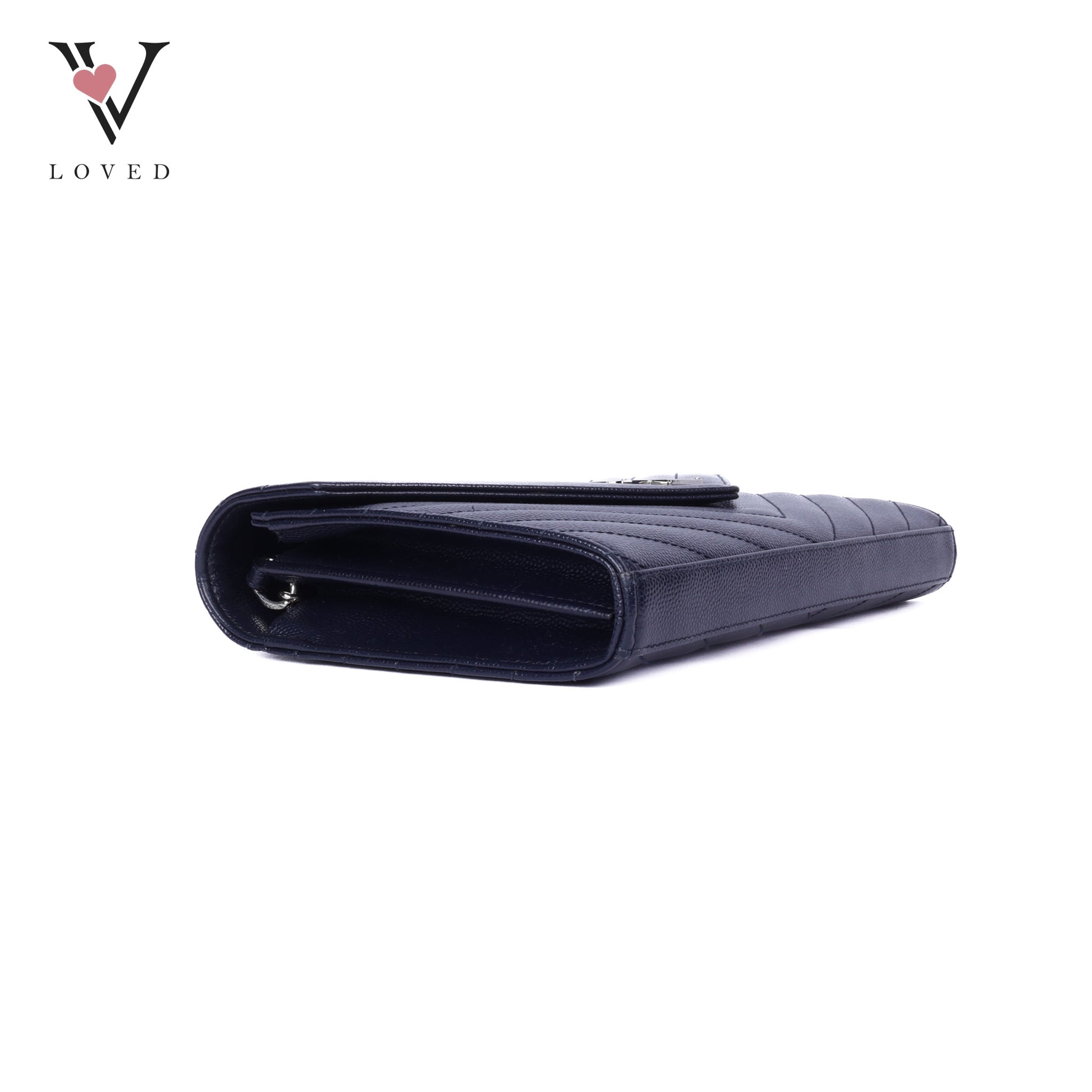 Dark Blue Cassandre Envelope Chain Wallet In Grain De Poudre Leather