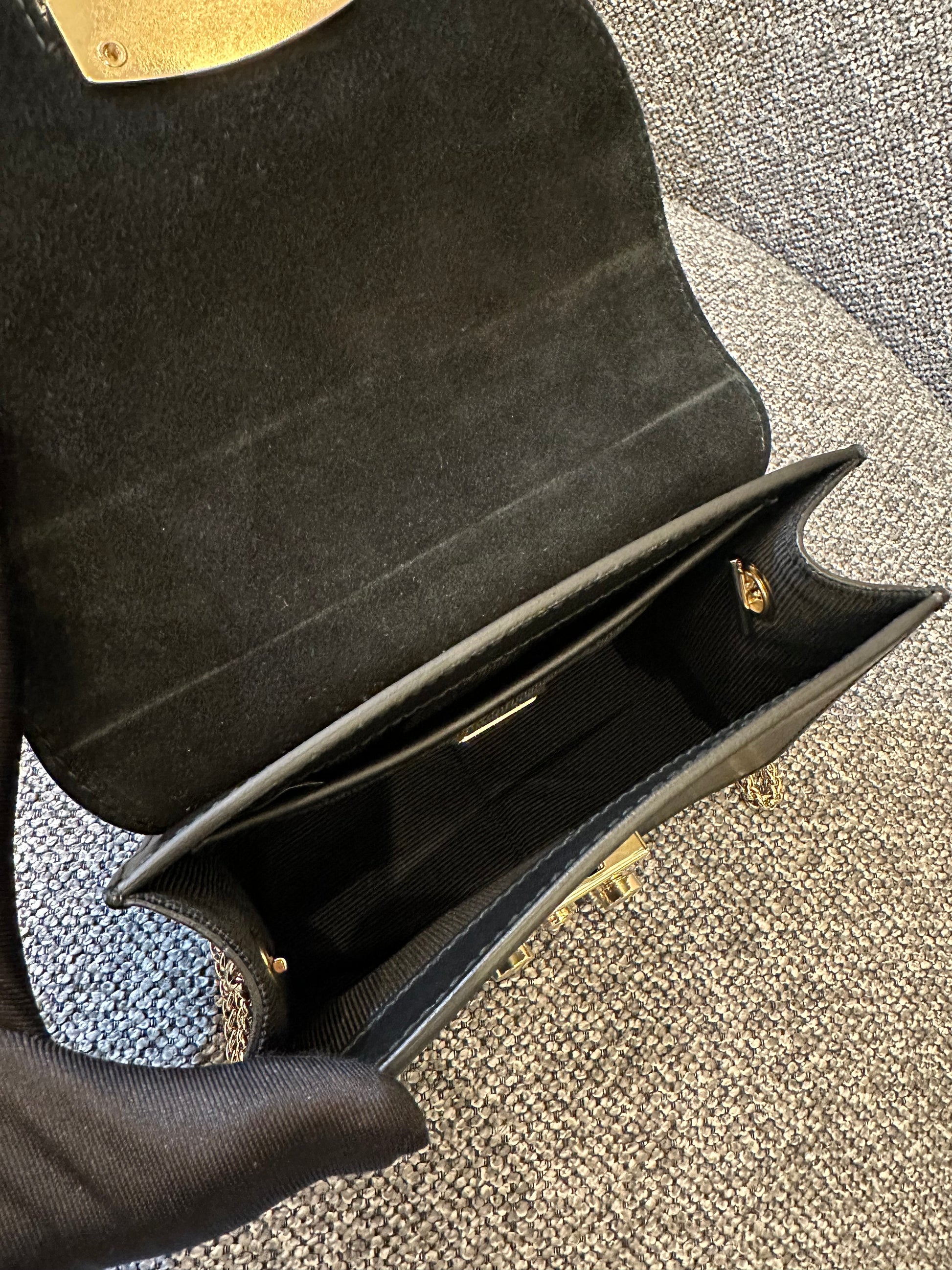Furla Metropolis Mini Crossbody Bag in Black Leather with Gold-Toned Studs