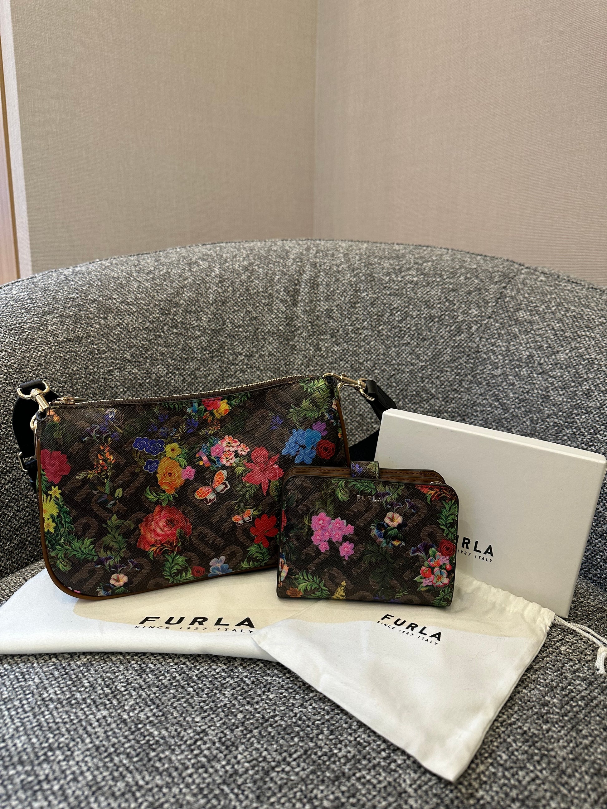 Furla Moon Shoulder Bag and Compact Wallet in Floral Print