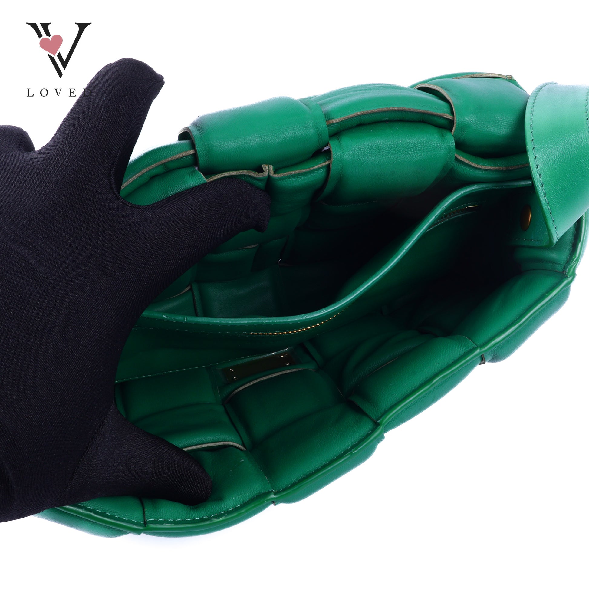 Green Nappa Maxi Inerrciato Padded Cassette Crossbody Bag
