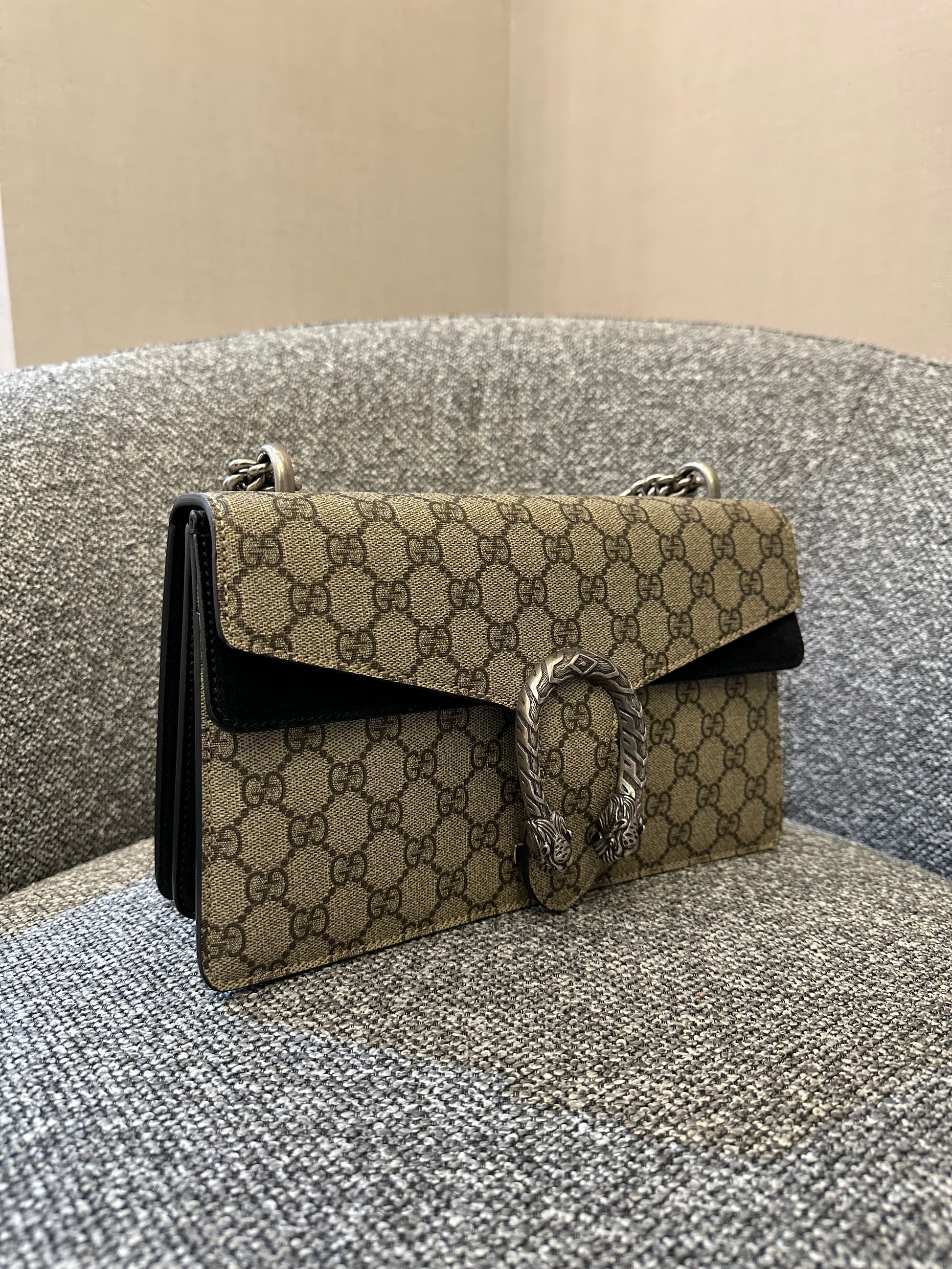 Gucci Dionysus GG Supreme Medium Shoulder Bag in Black Canvas
