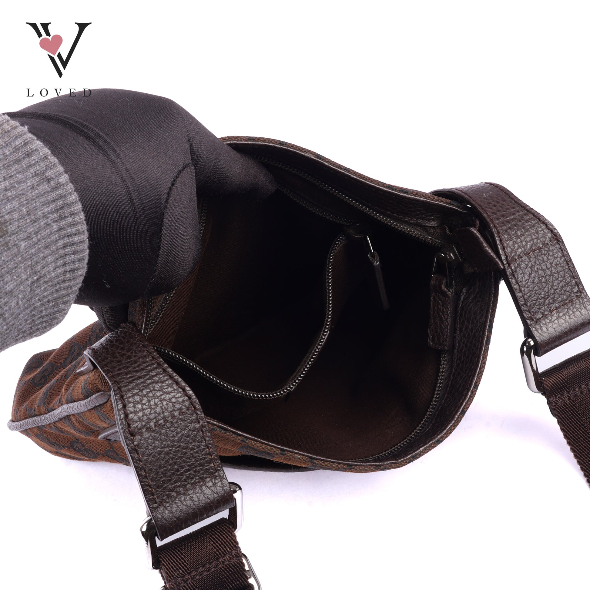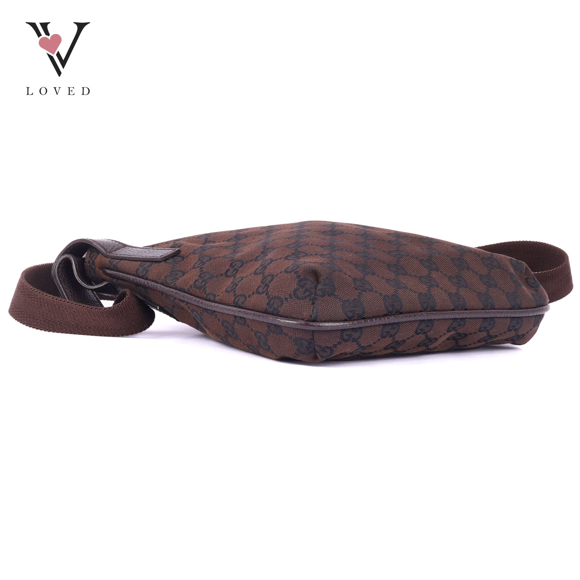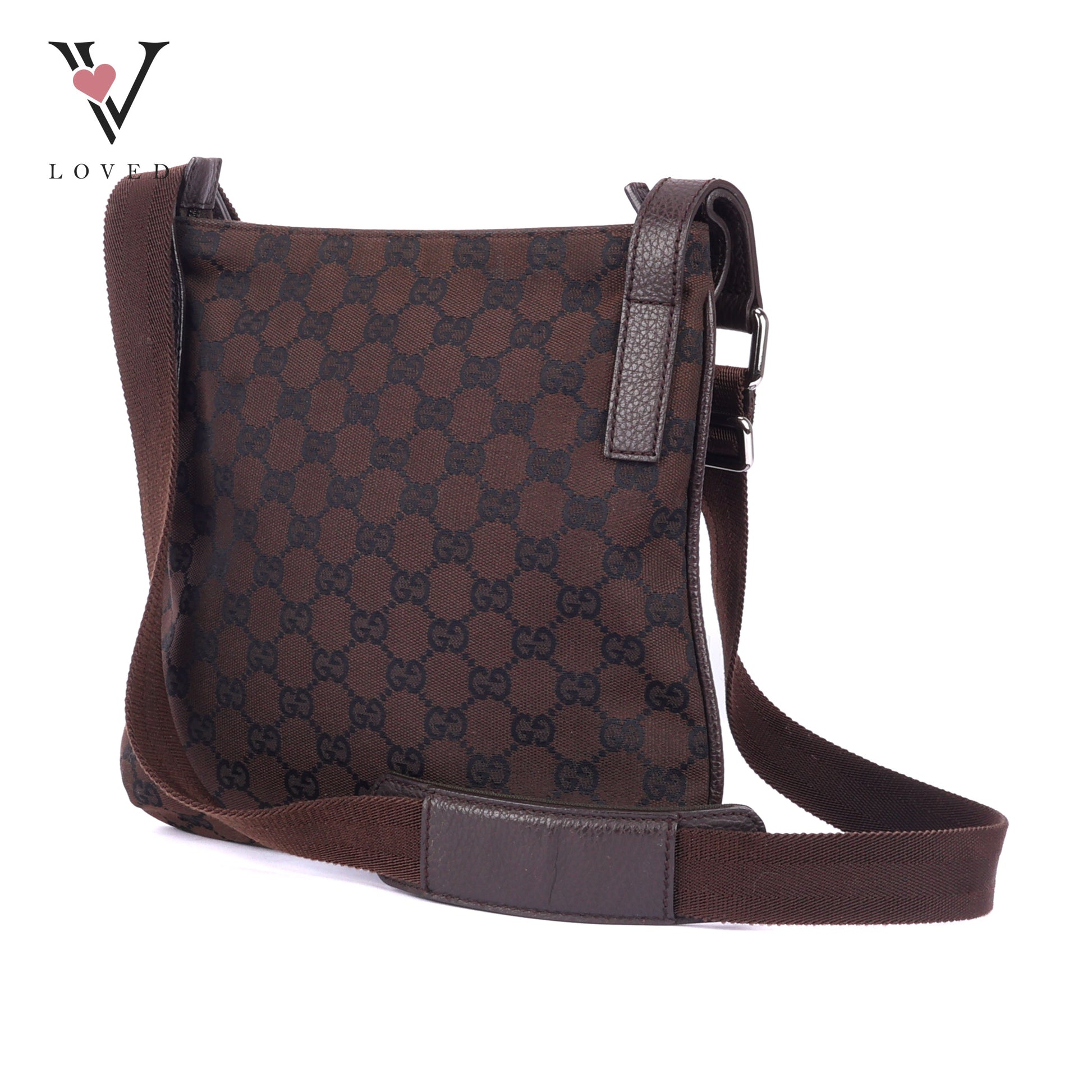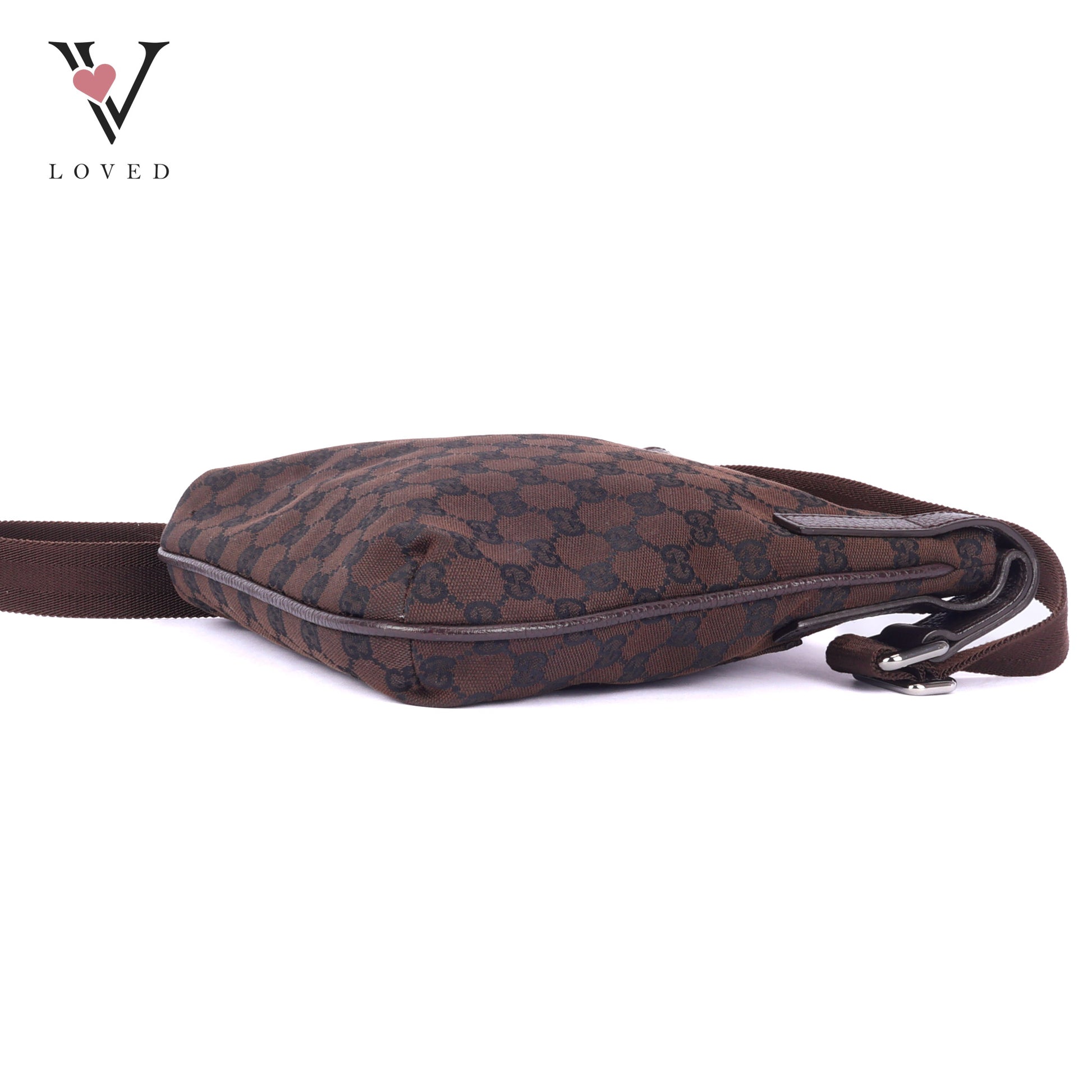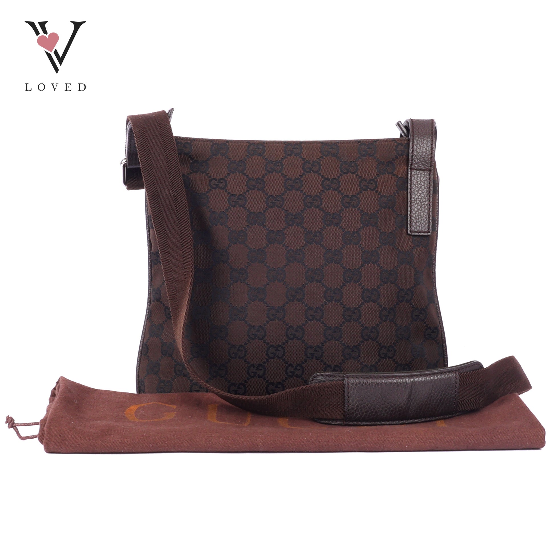 Gucci GG Canvas Messenger Bag In Marrone Canvas and Leather
