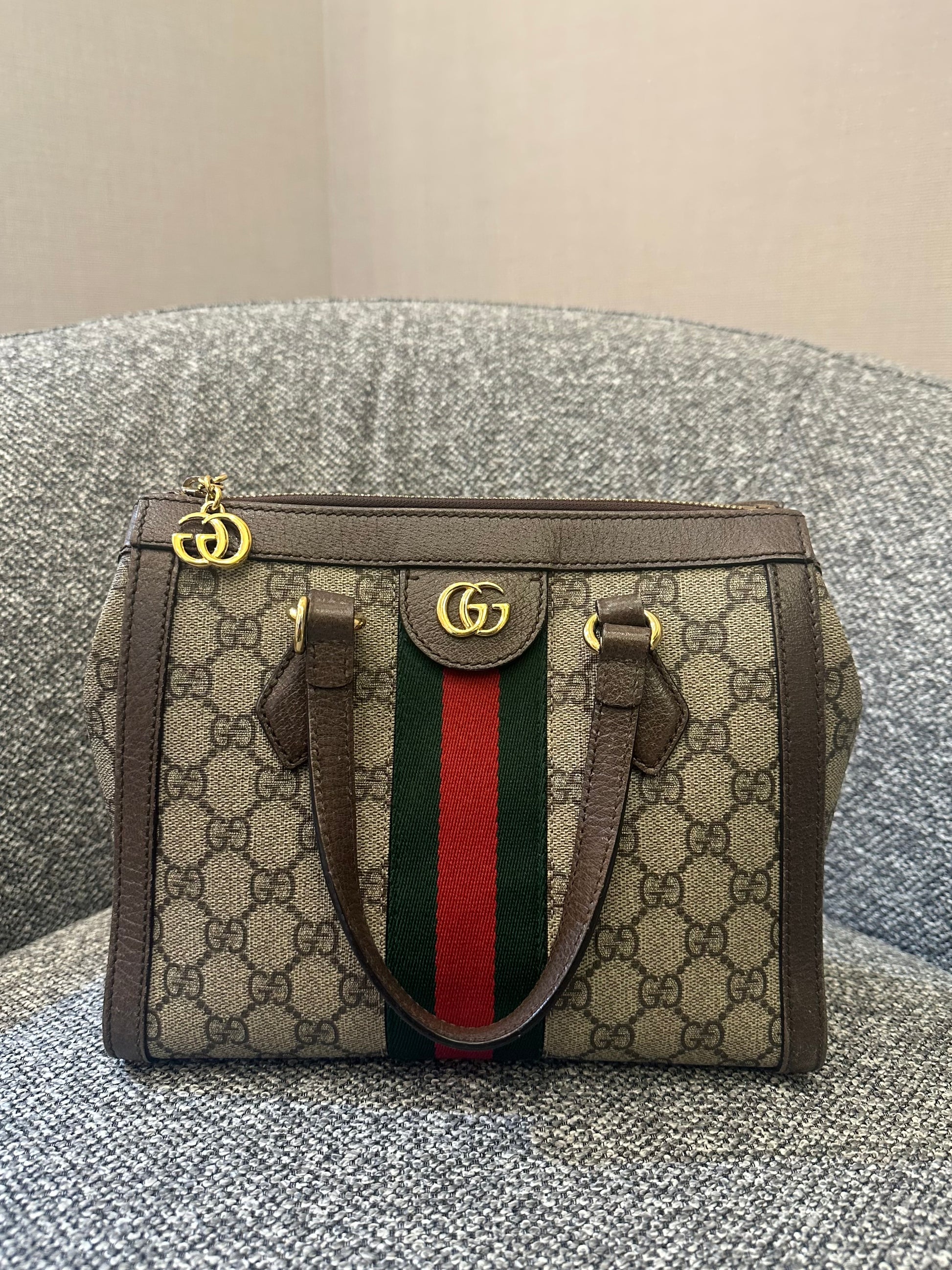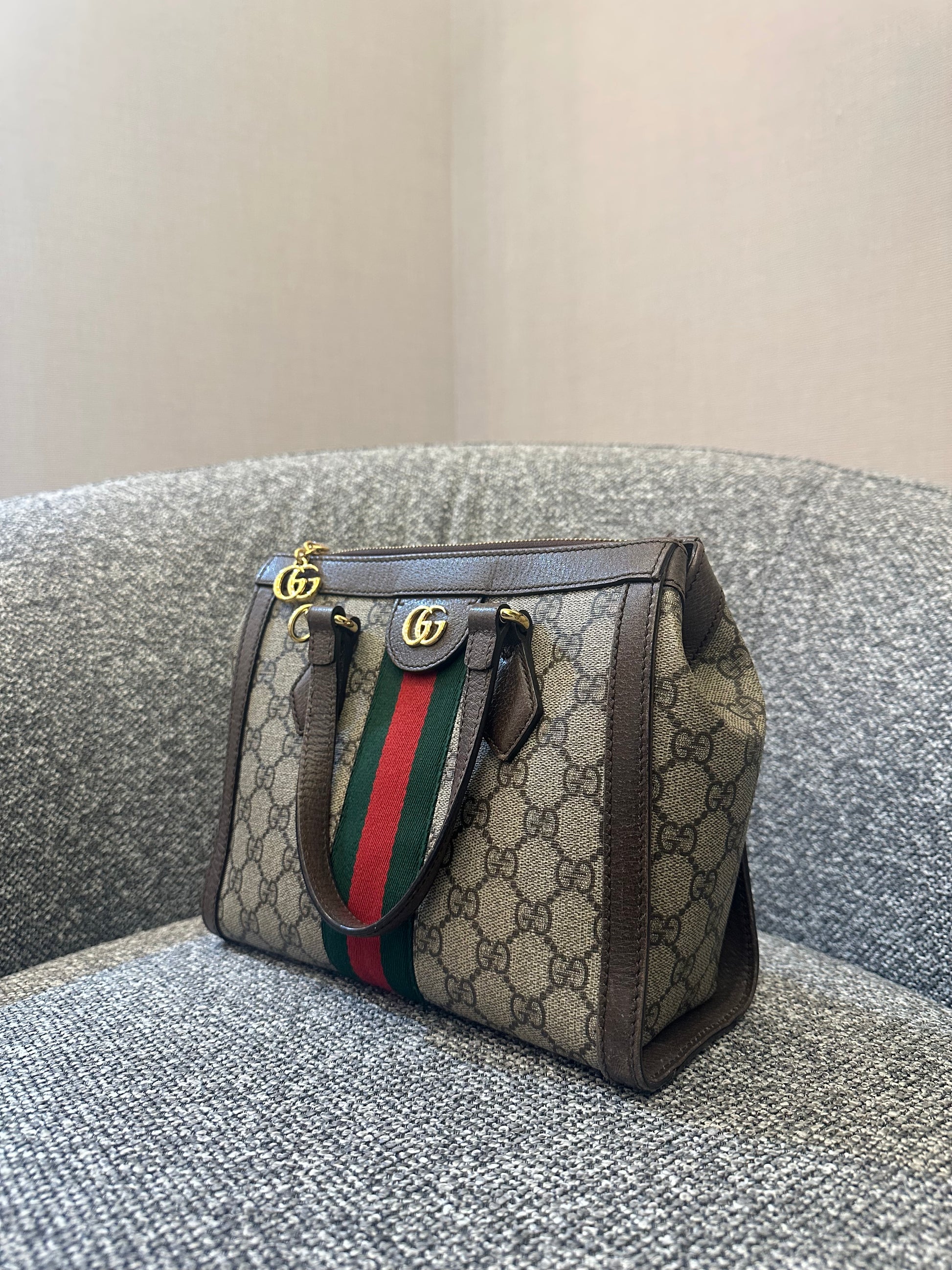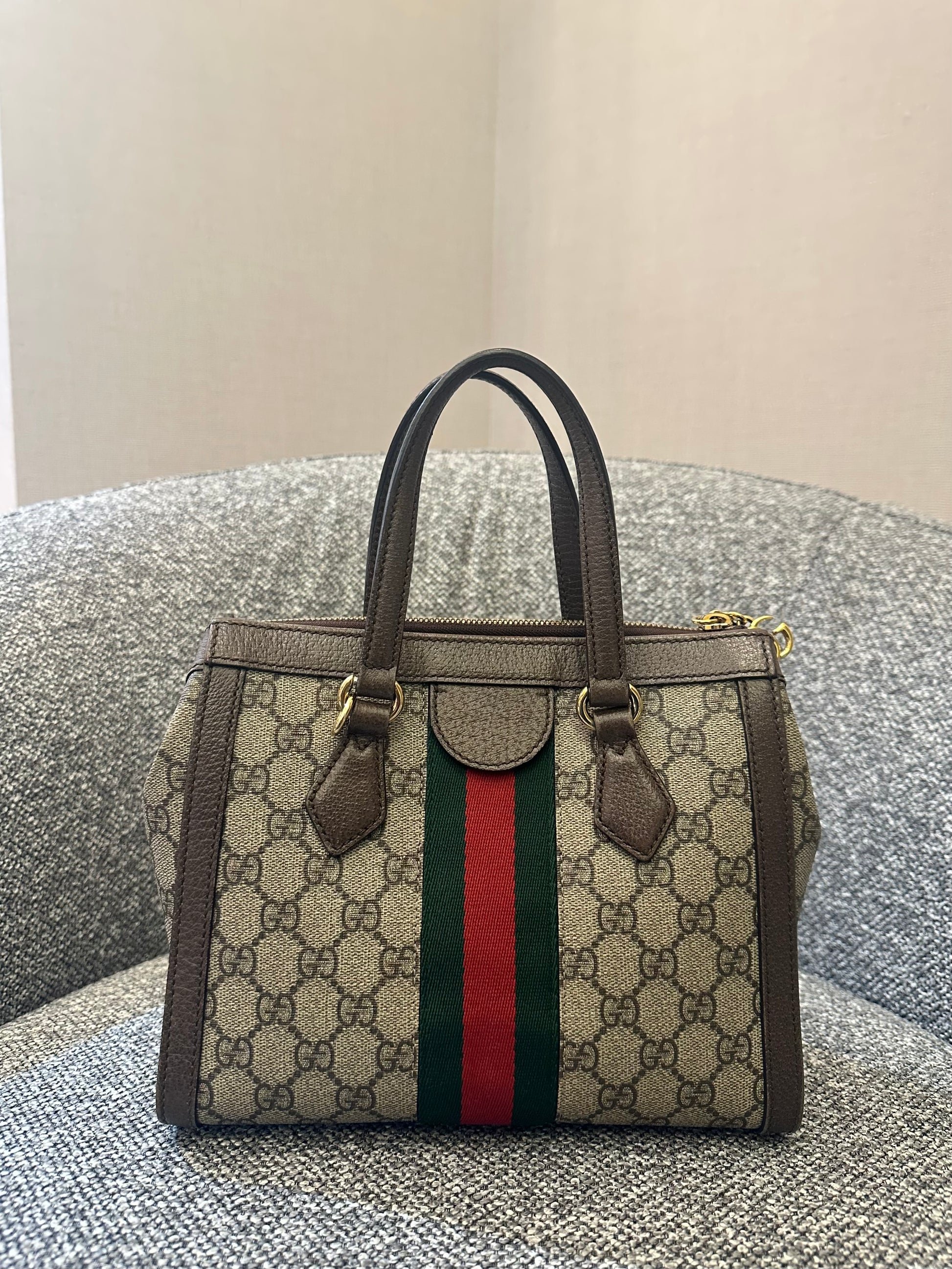 Gucci Ophidia Small Tote Bag in Beige and Ebony GG Supreme Canvas