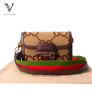 Horsebit 1955 Shoulder Bag Brown Canvas