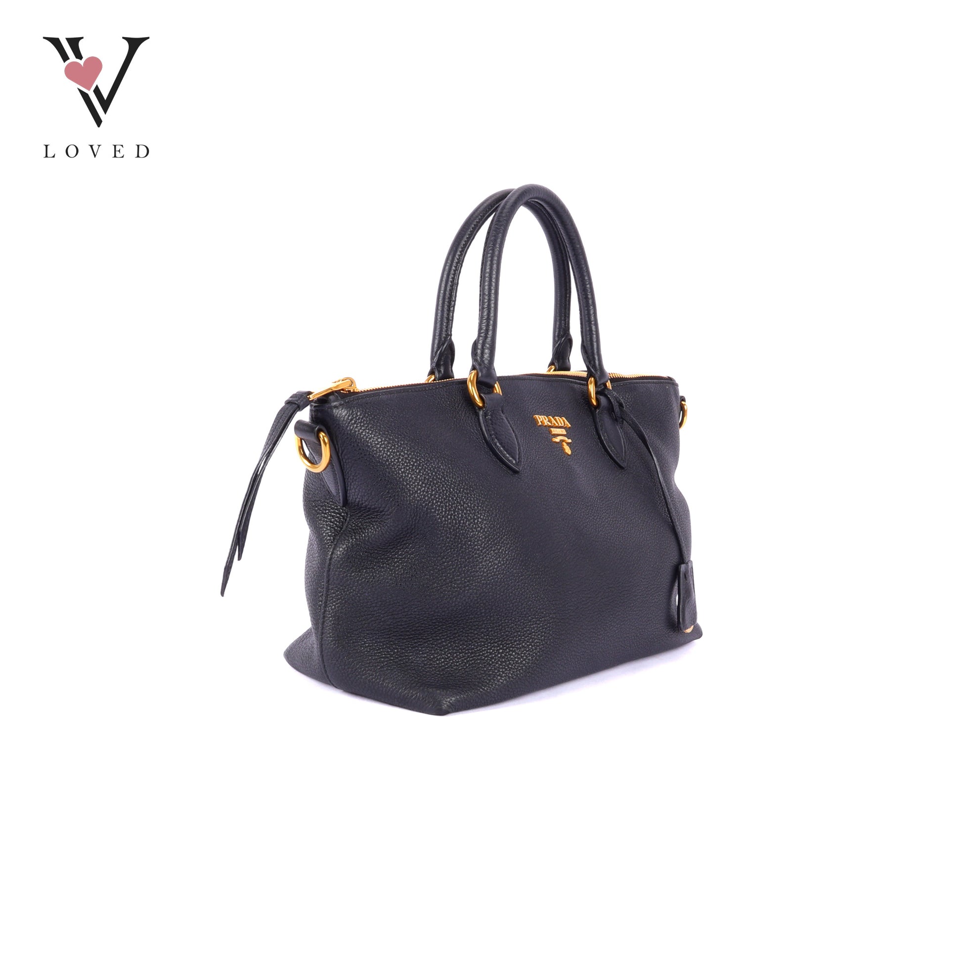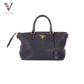 Prada Black Vitello Phenix Leather Top Handle Crossbody Bag