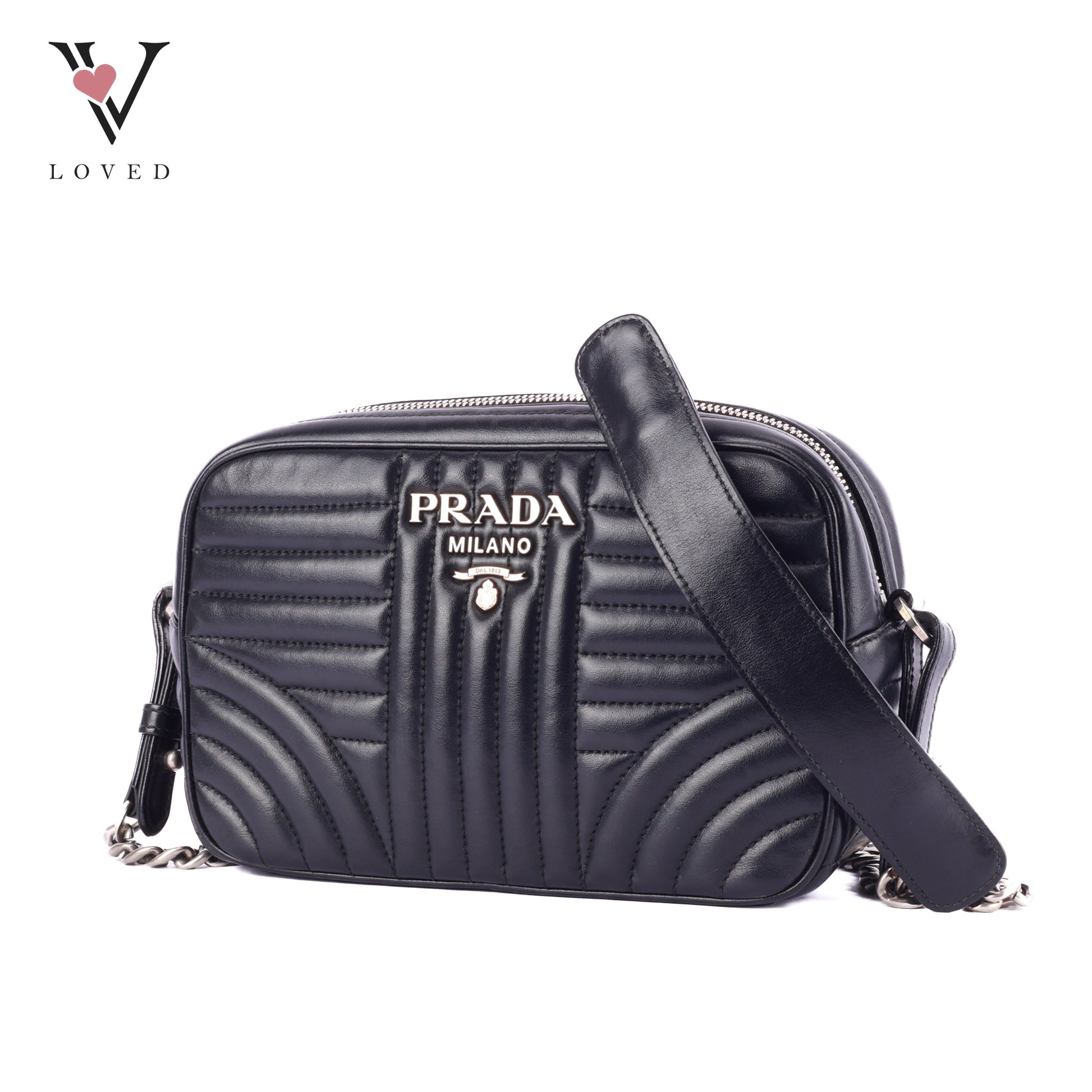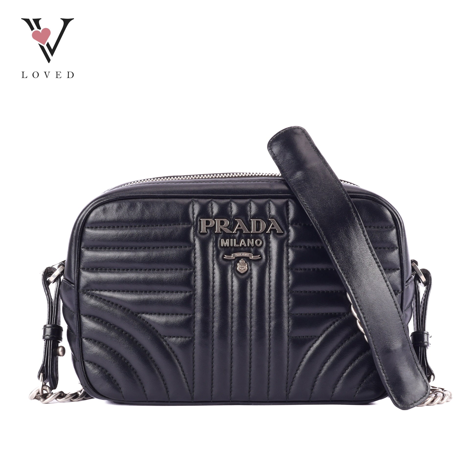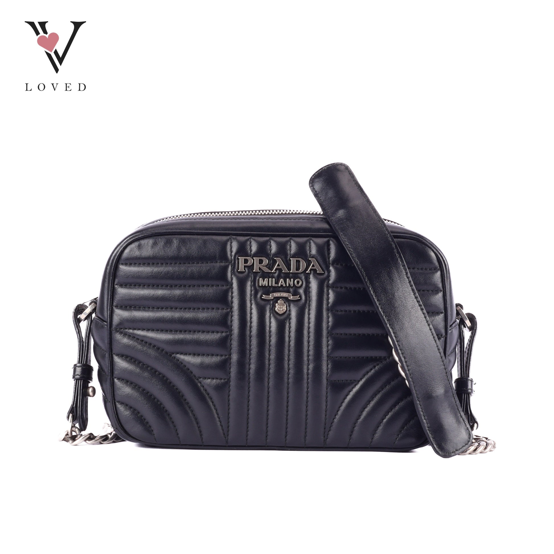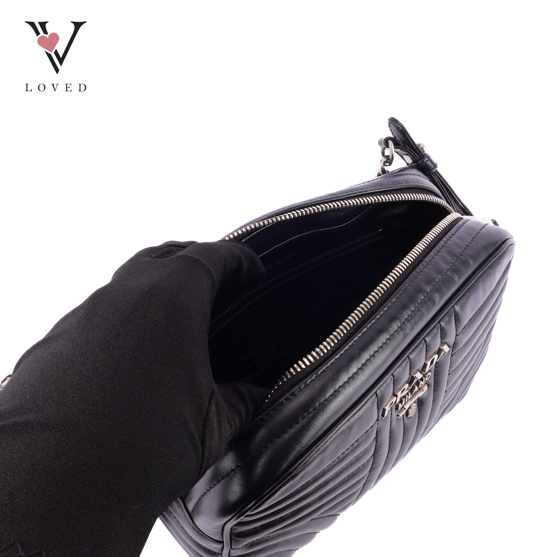 Prada Diagramme Crossbody Bag In Black Soft Calfskin Leather