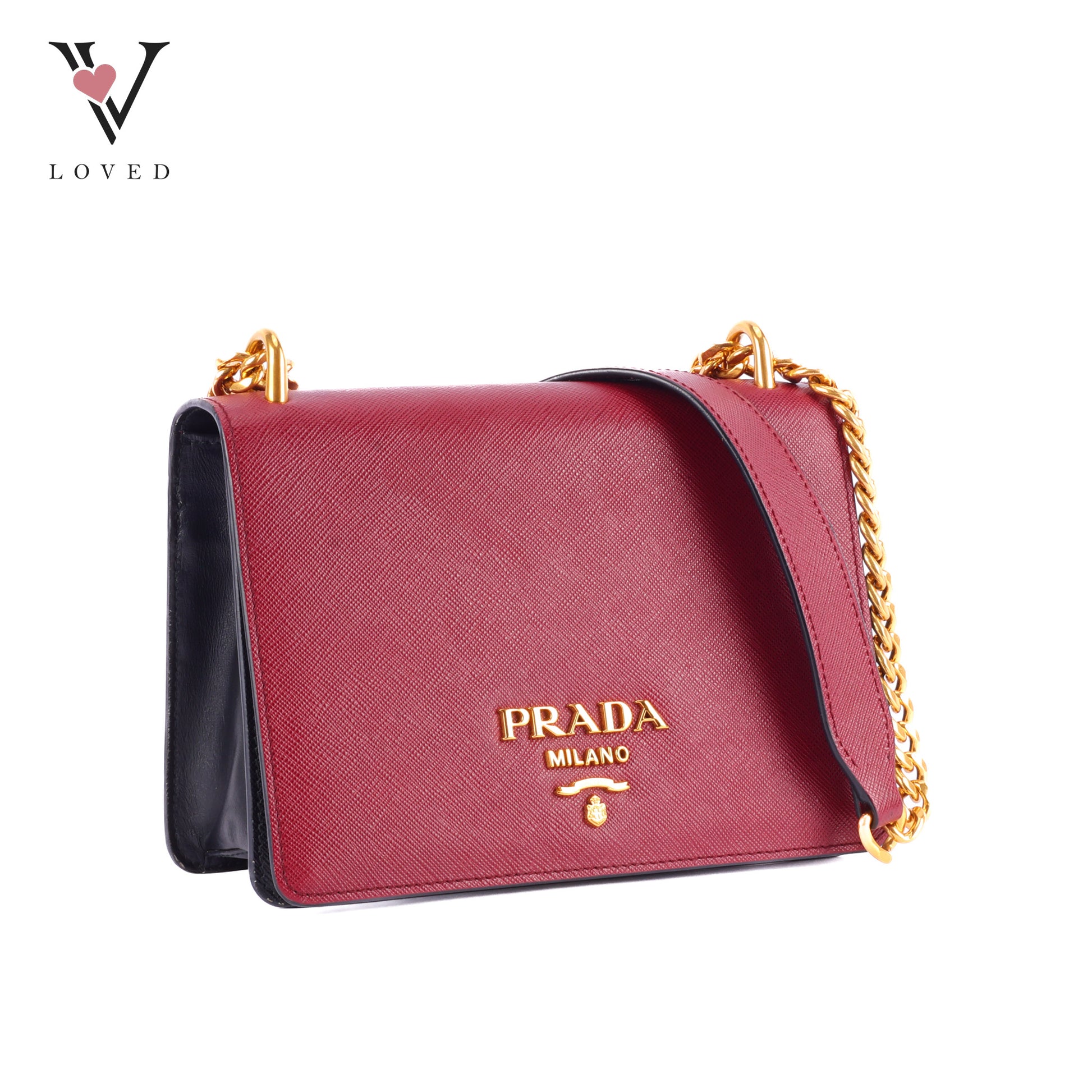 Prada Fouco Saffiano Lux Leather Crossbody Bag In Red