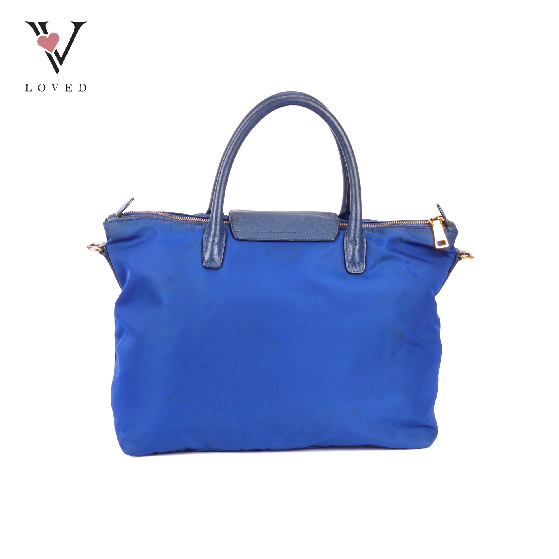 Prada Tessuto in Bluette Nylon and Saffiano Leather Tote Bag