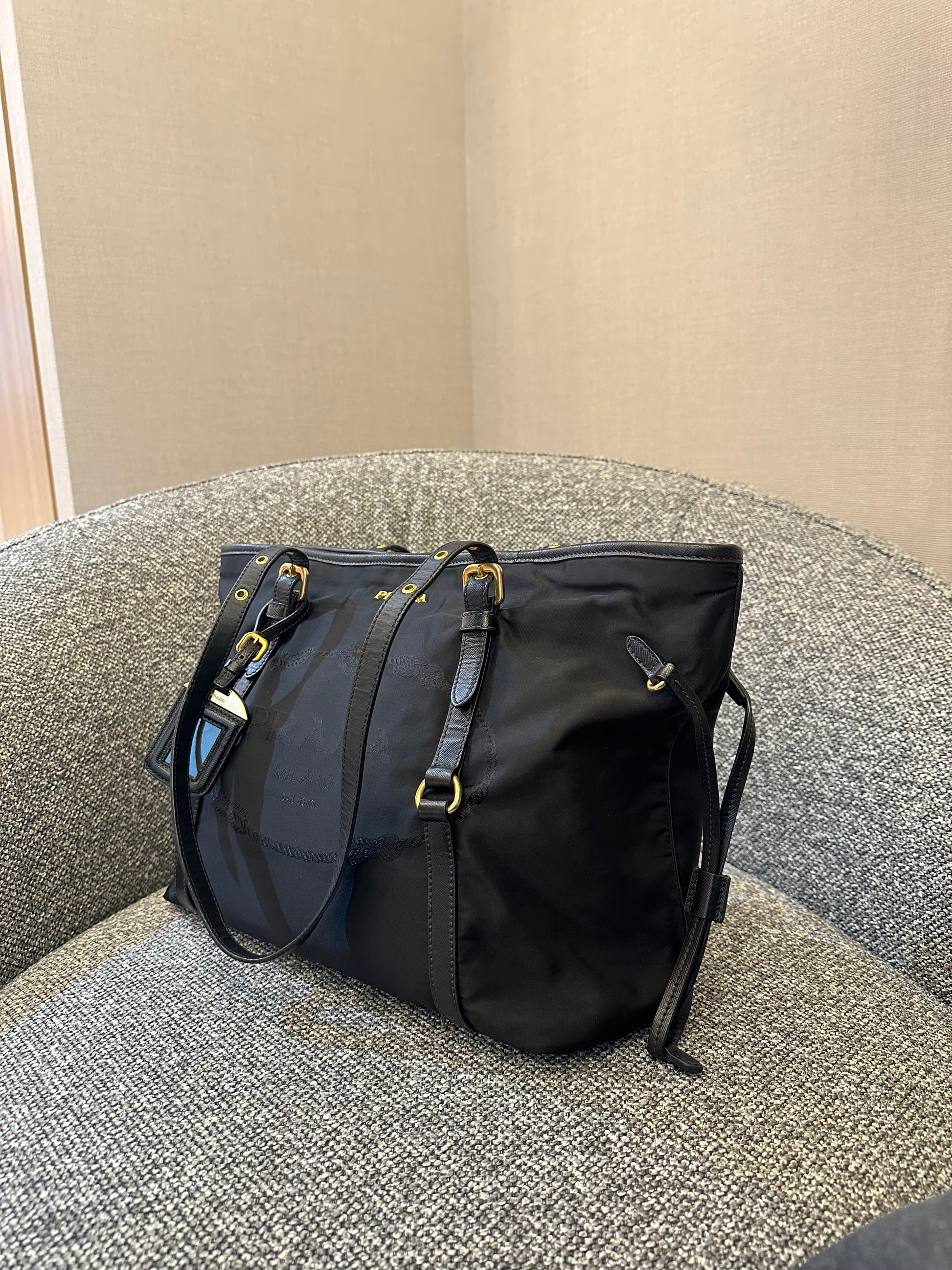 Prada Tote Bag in Black Tessuto Nylon and Leather