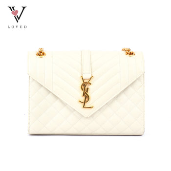 Yves Saint Laurent Envelope Shoulder Bag in White Quilted Leather