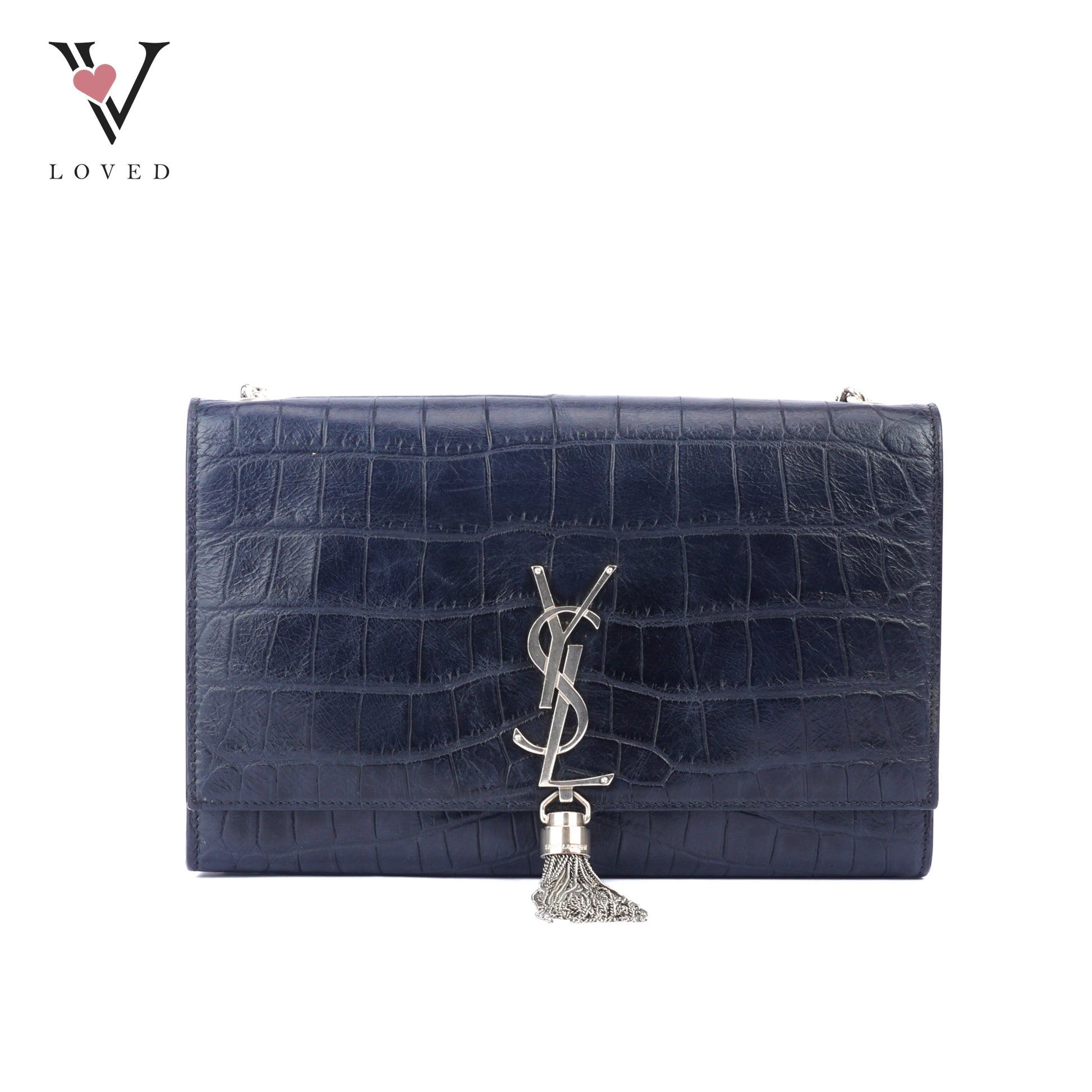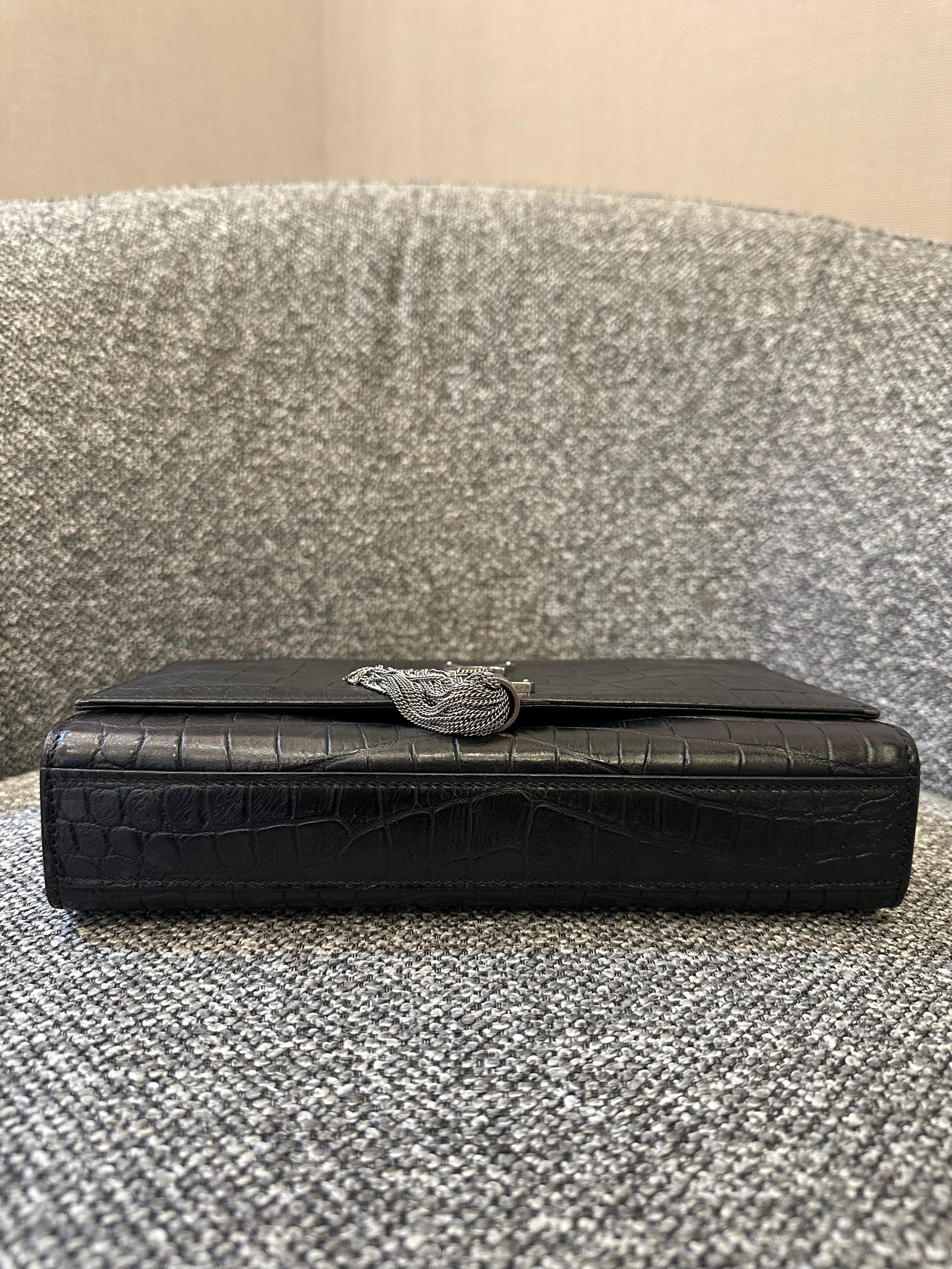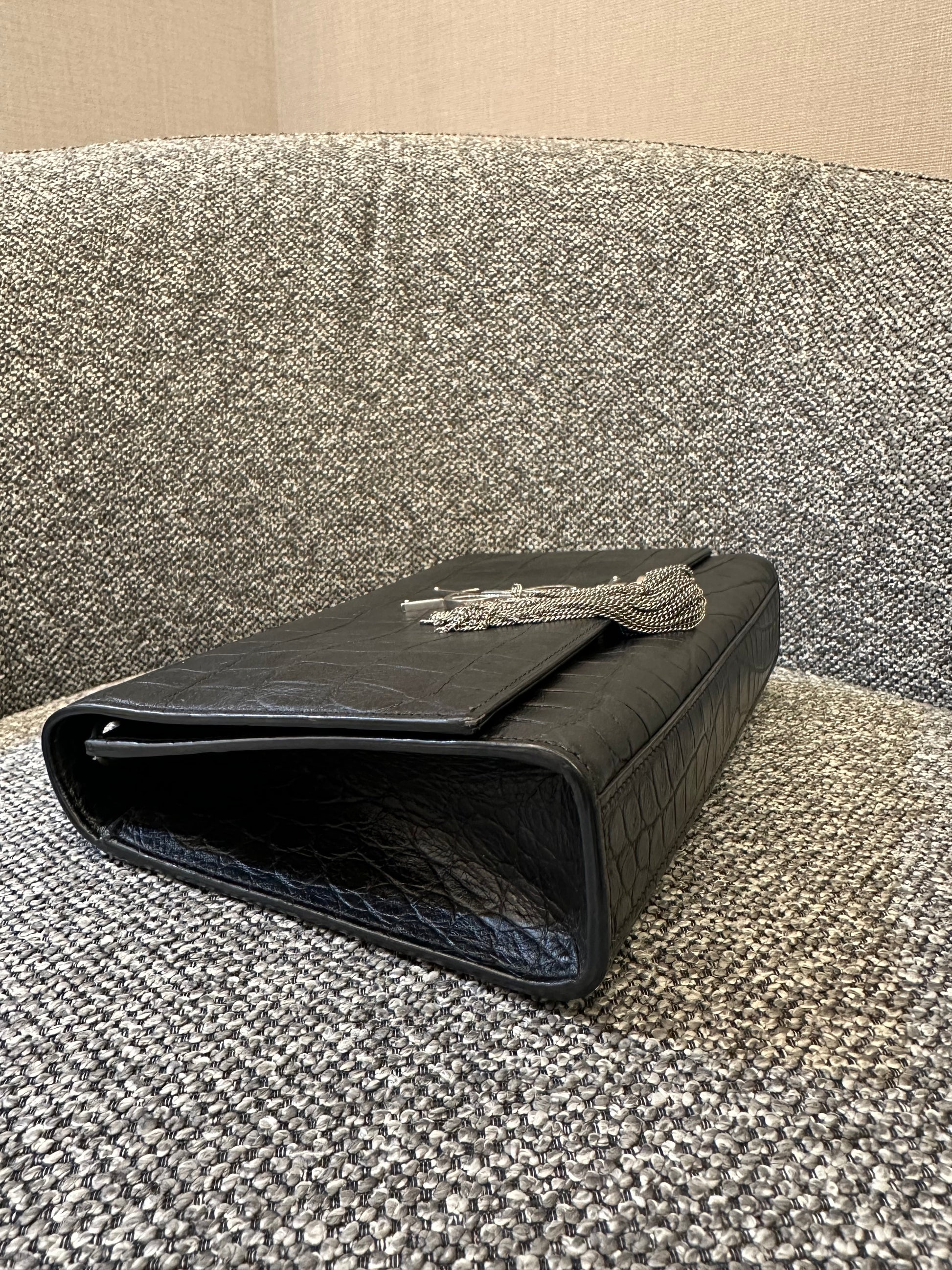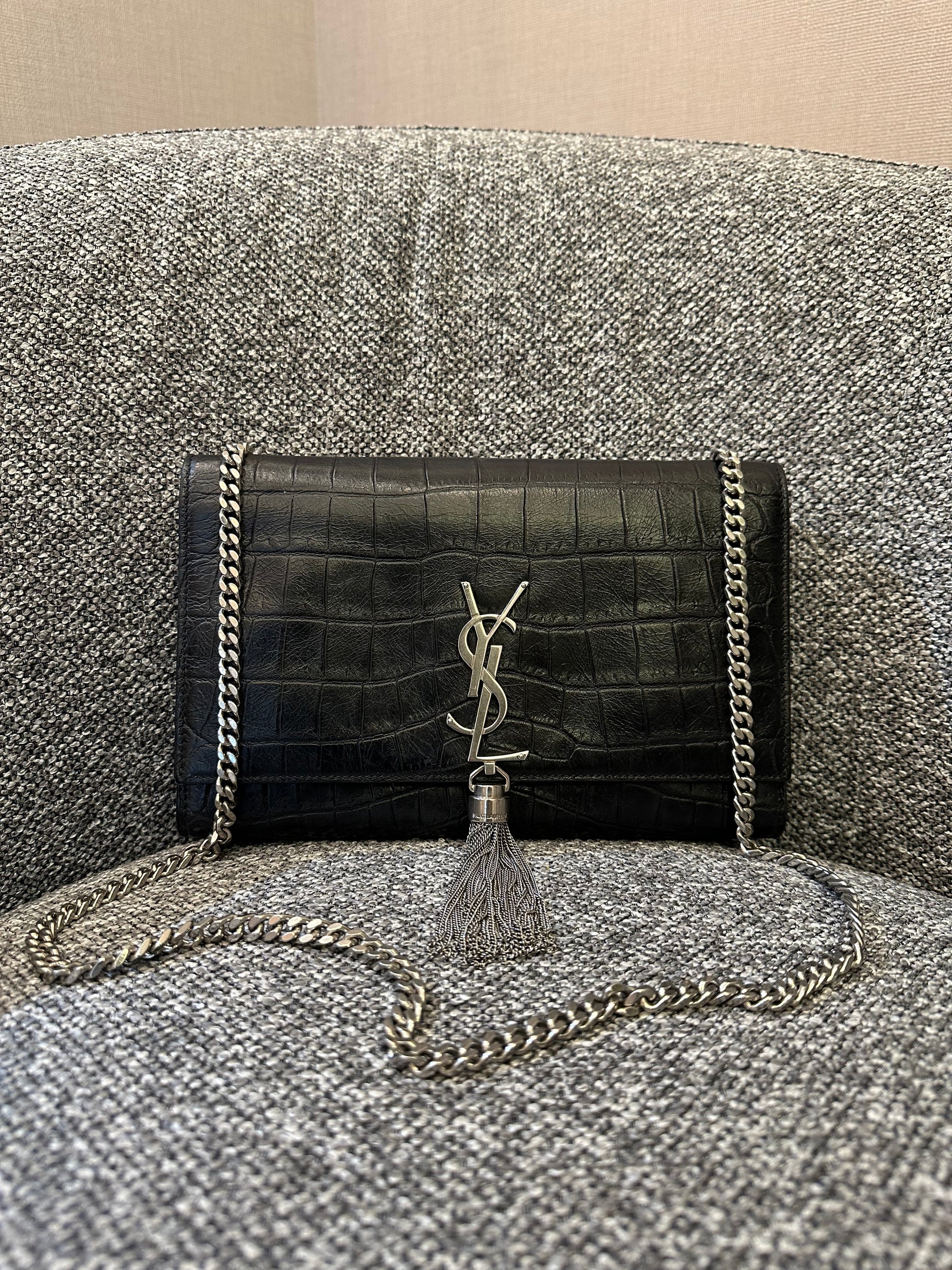 Yves Saint Laurent Kate Shoulder Bag in Crocodile-Embossed Black Leather