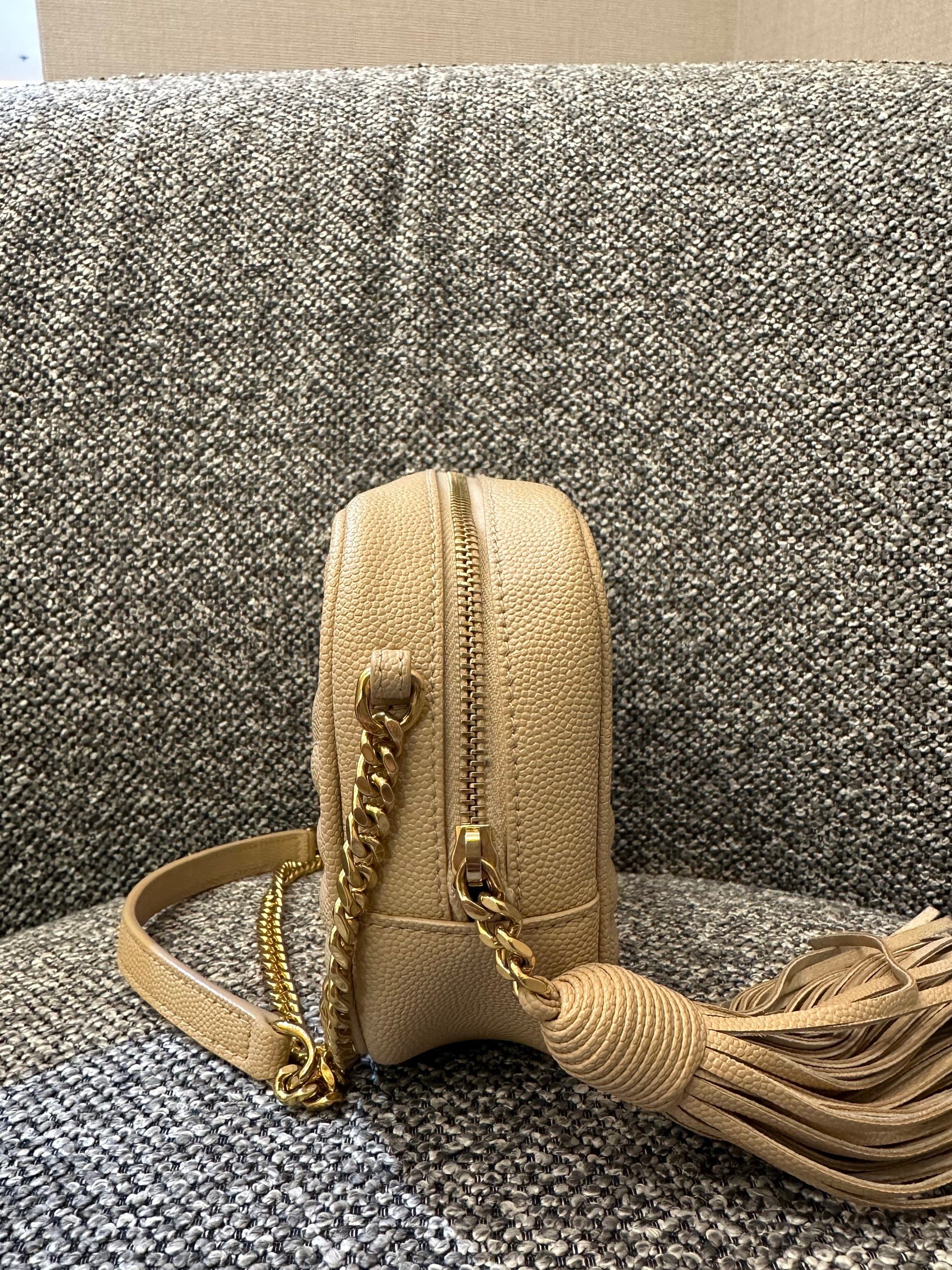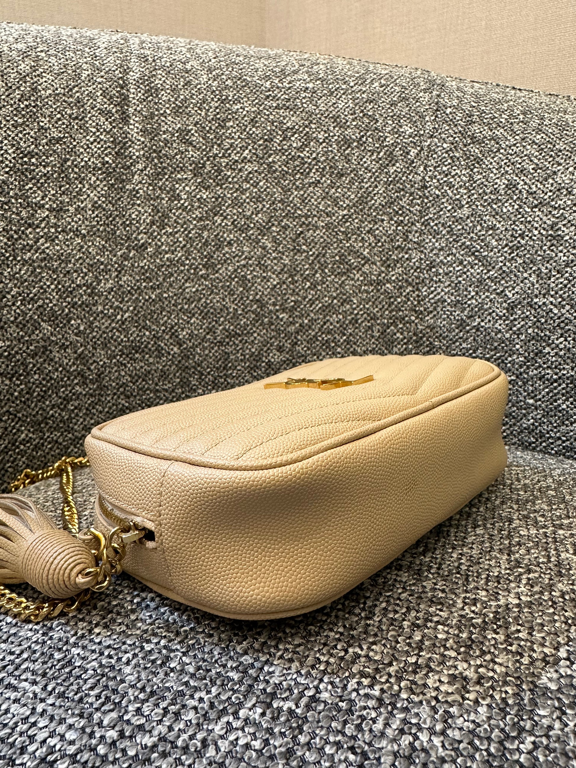 Yves Saint Laurent Mini Lou Camera Bag in Beige Matelassé Leather